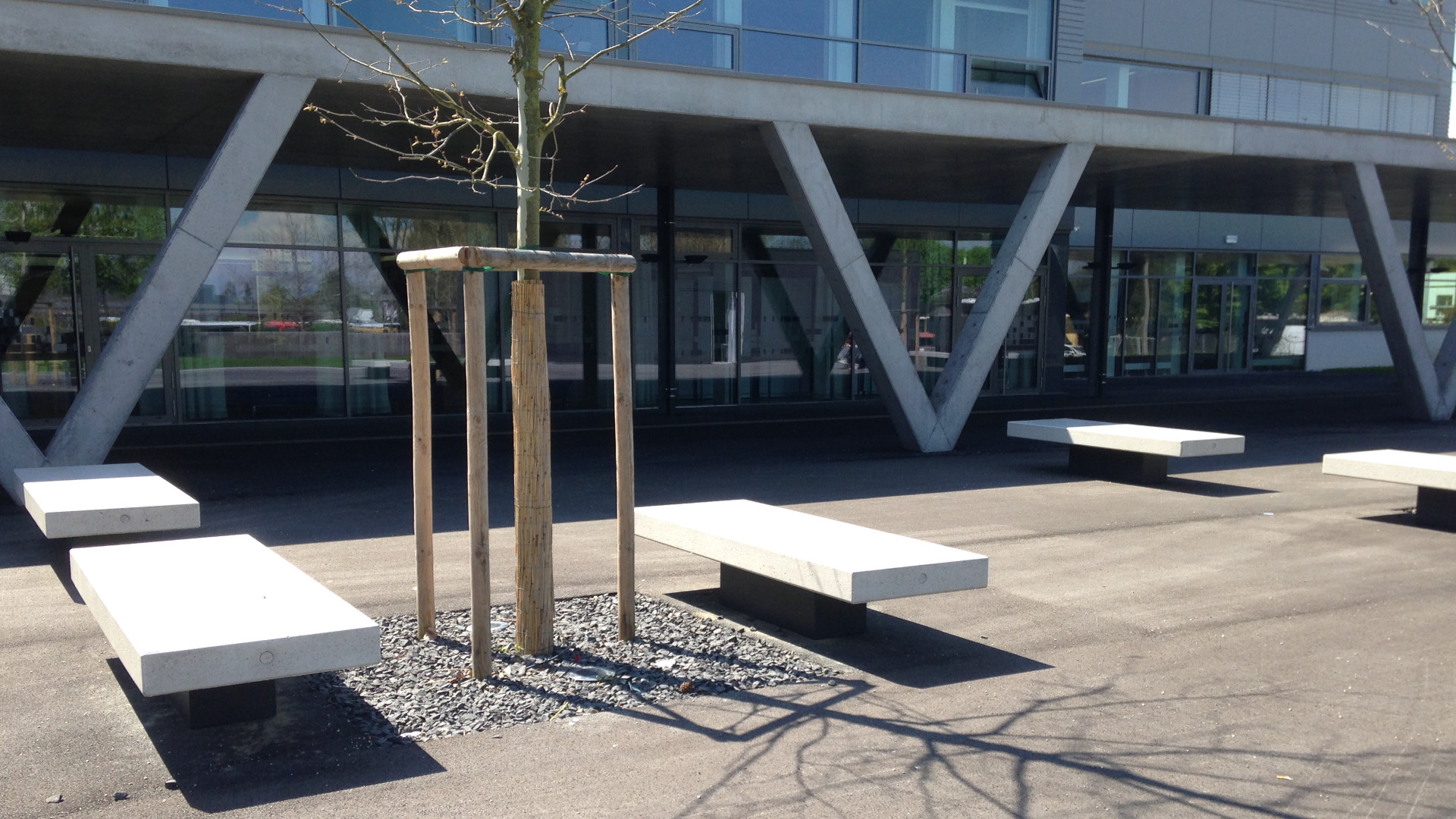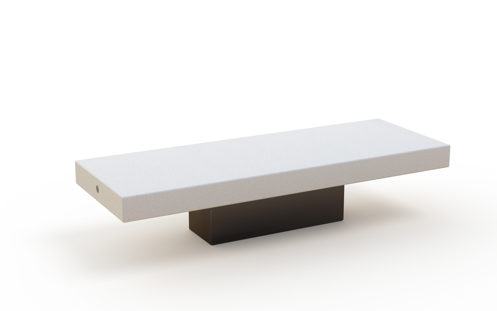 Minimal in form yet strong in presence, this bench features a seat made of HPC (High Performance Concrete), a material known for its mechanical strength and refined finish, supported by a central steel base. The balance between raw material and clean design makes it ideal for contemporary urban settings, where furniture must be both functional and capable of defining the surrounding space.