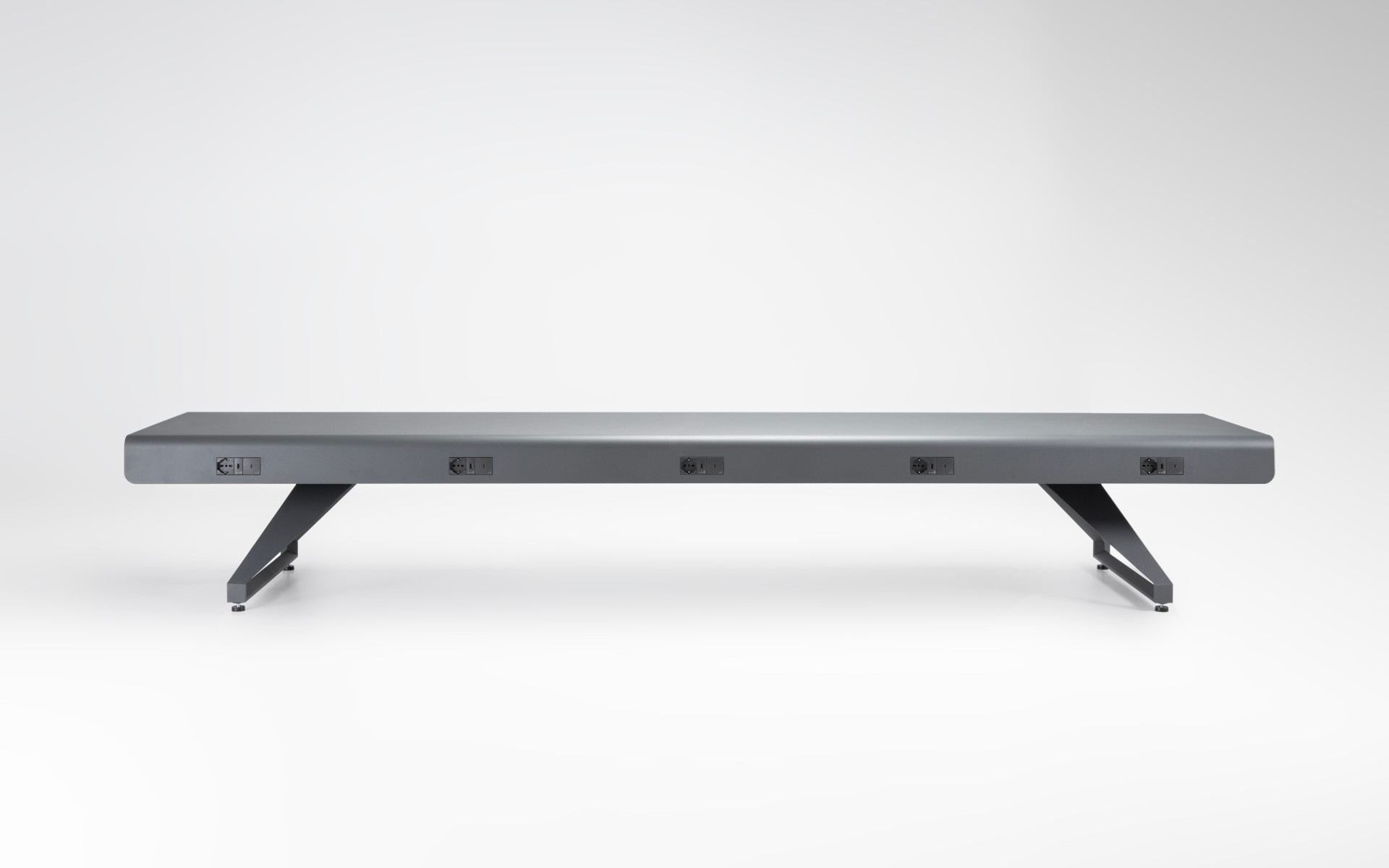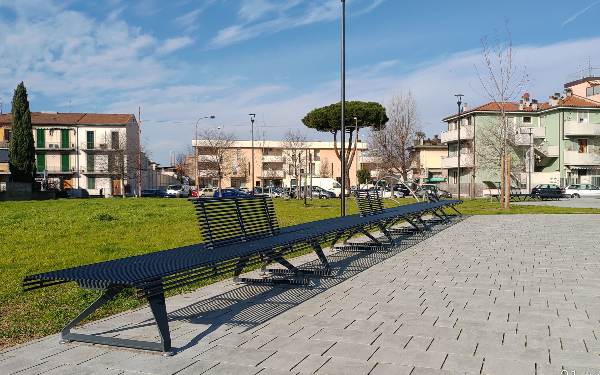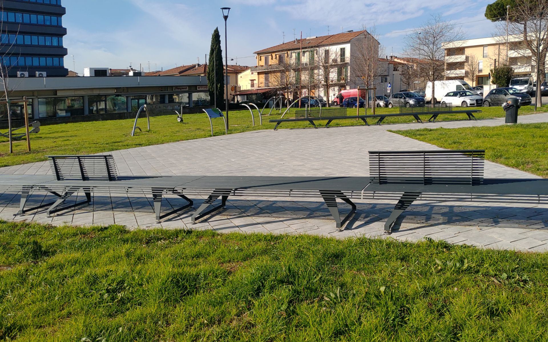 This collection of modular benches is designed to offer maximum compositional flexibility and seamless integration into public spaces. The seat surface, available in steel rods, hardwood, or thermotreated pine, rests on two side supports made of painted cast aluminum, highlighting a balance of clean design and structural strength. Offered in four versions – without backrest, with right half-backrest, or with left half-backrest or for installation – the system allows for customized configurations suited to a variety of environments and uses, combining comfort, style, and design freedom.