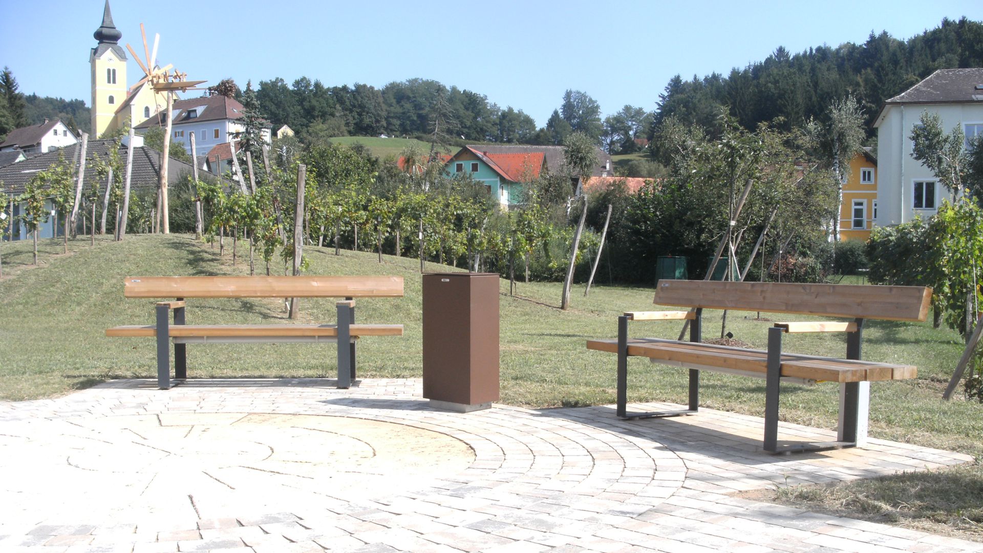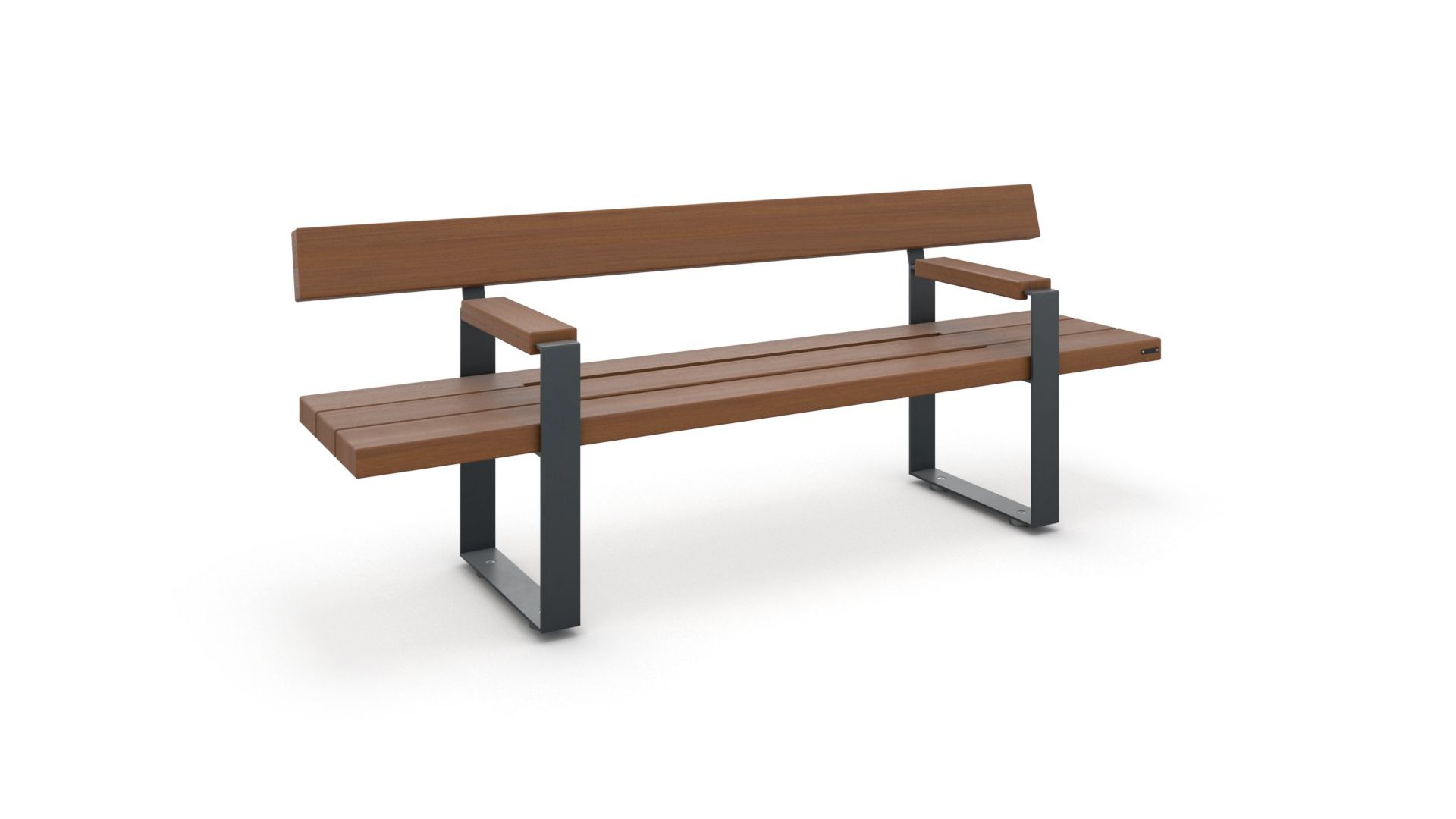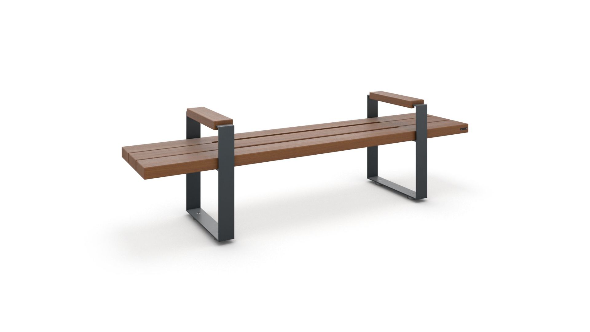 The bench collection features an elegant and durable design, consisting of two supports made of painted steel plate, Corten, or Inox, offering a strong and long-lasting structure. The armrests are covered with hardwood or thermotreated pine, while the seat is made of hardwood or thermotreated pine, materials chosen to ensure comfort and resistance to weather conditions. This combination of materials creates an ideal bench for public spaces, blending aesthetics with functionality.
