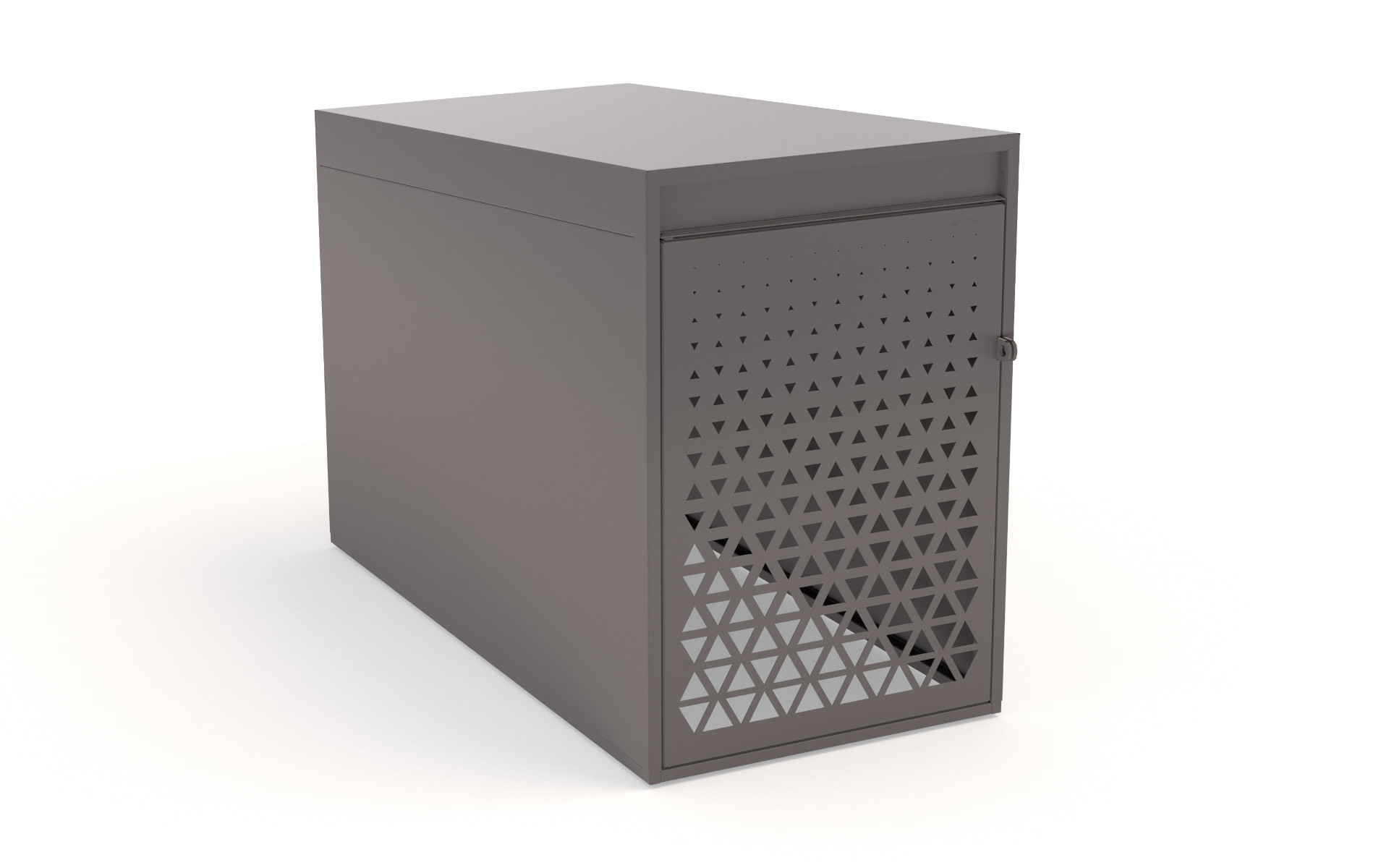 Single-unit modular bike box made of steel sheet, featuring a perforated steel front door that ensures ventilation and visibility. The system is designed for padlock closure, offering a secure, compact solution that easily fits into both urban and private environments.