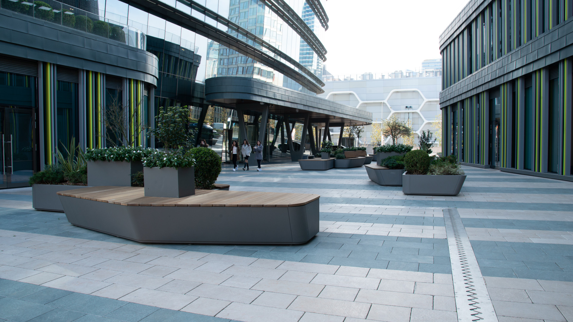 Modular planters made of steel sheet, available in concave or convex shapes, with seating in hardwood or larch. This collection offers two models: with or without a backrest, to meet different design and comfort needs. The planters can be installed individually or in compositions, creating harmonious solutions that seamlessly integrate with the other elements of the City of Sion collection, enhancing public spaces with elegance and functionality.