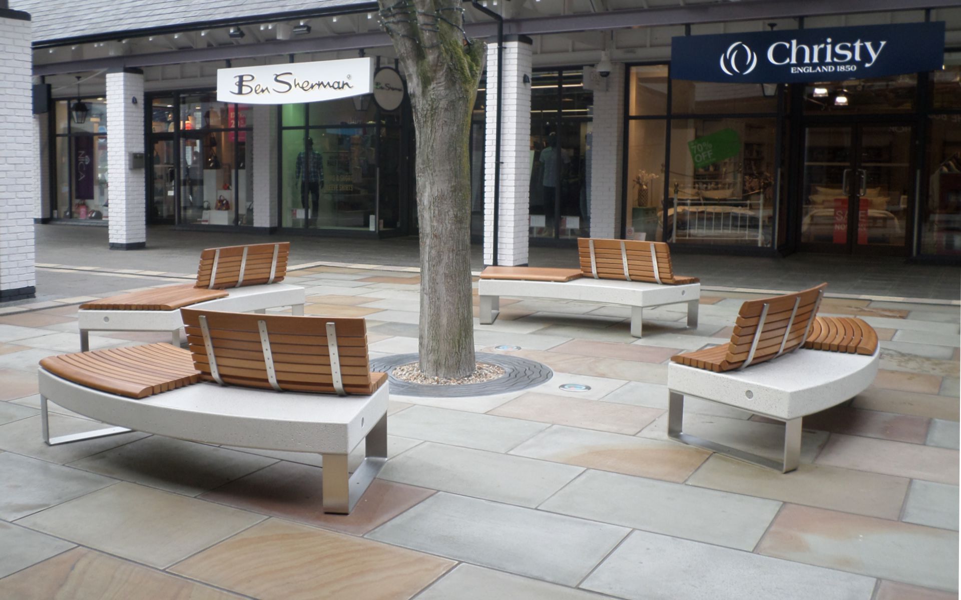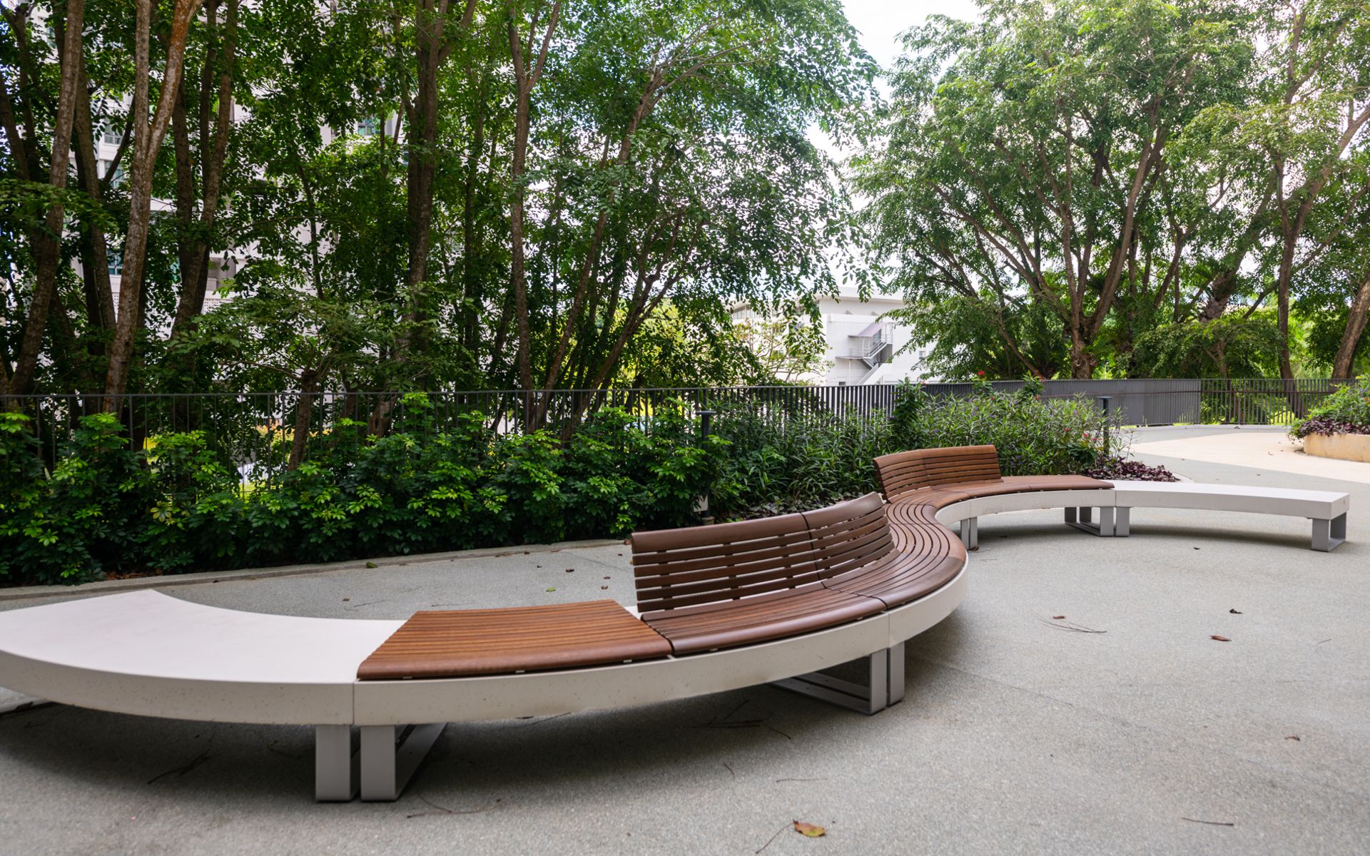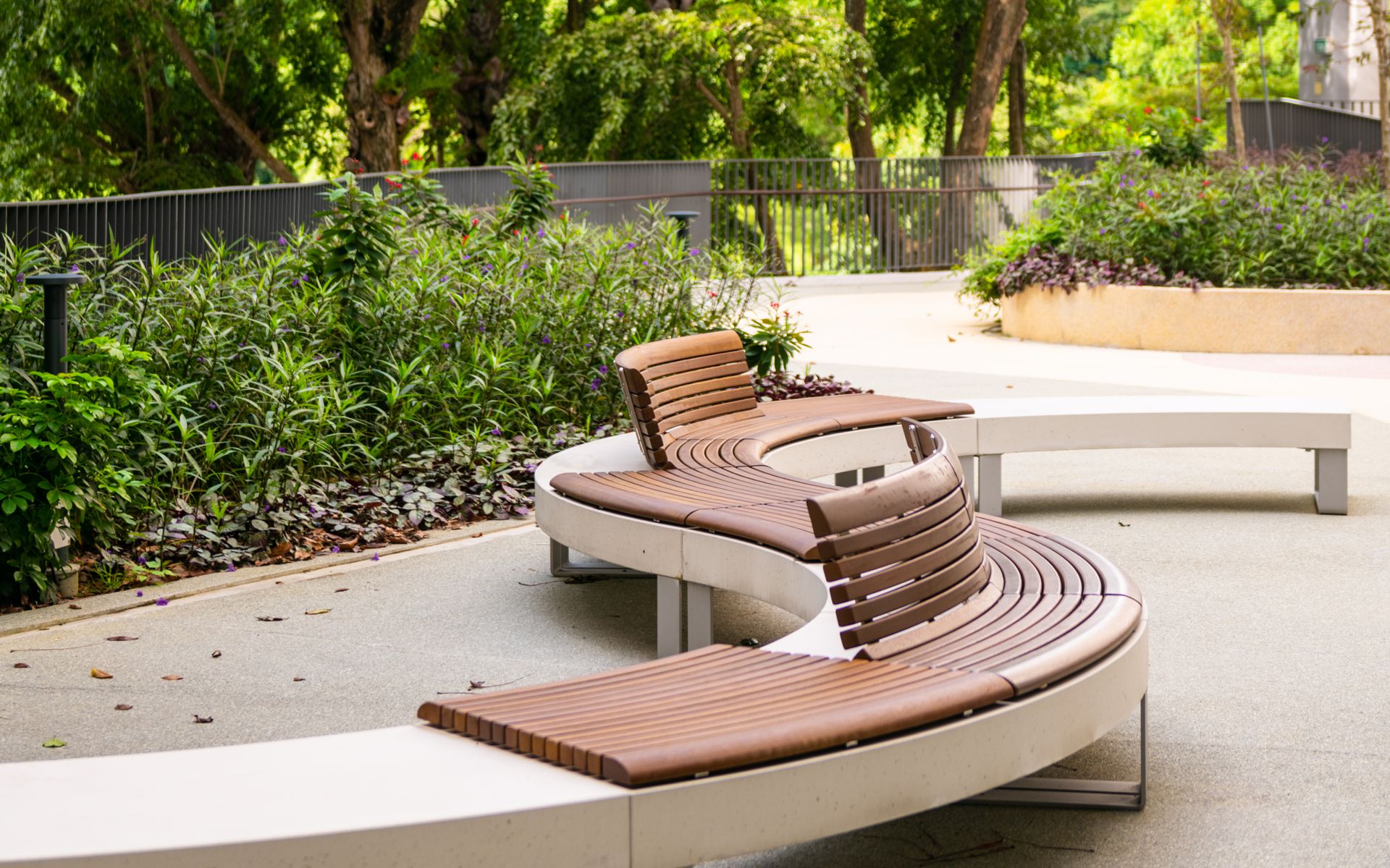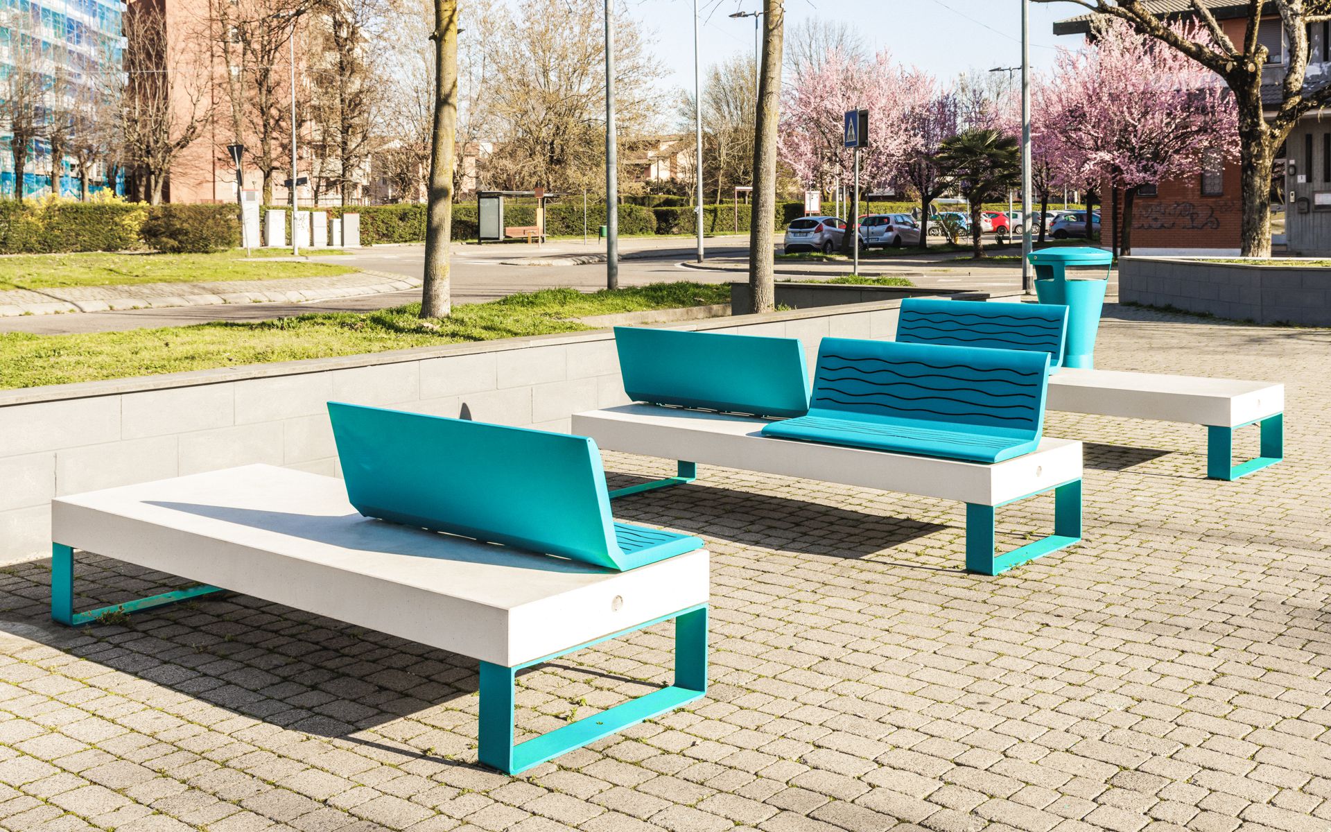 The collection consists of linear and curved seating surfaces and planter modules, all made from HPC (High Performance Concrete), a durable and modern material. The seating surfaces can be customized with wooden or powder-coated steel seats, powder-coated or stainless steel backrests, and supports in plate or sheet steel, offering a variety of aesthetic and functional options. All modules can be combined in different configurations, providing tailored solutions for any urban space and seamlessly integrating with other elements of the collection.