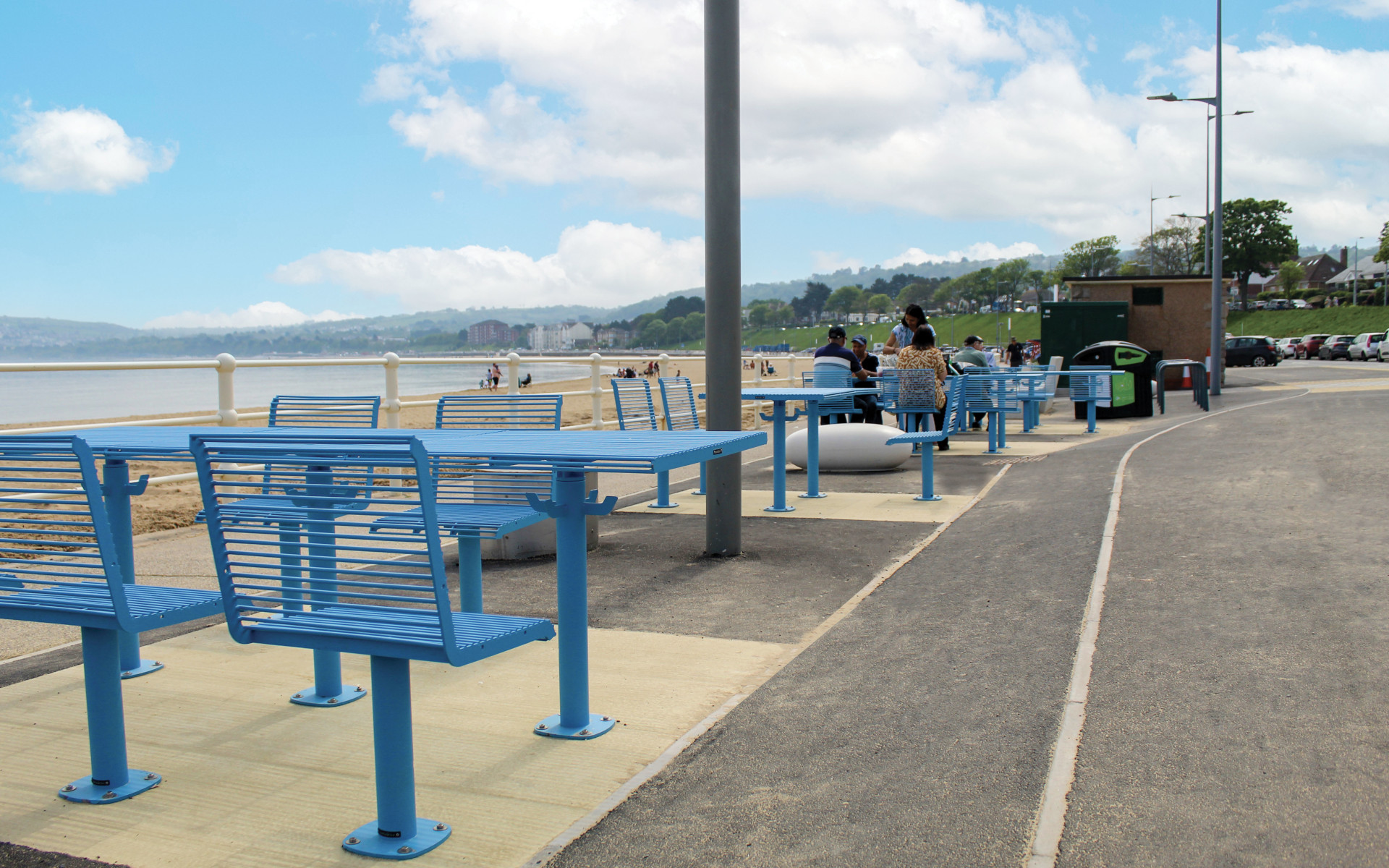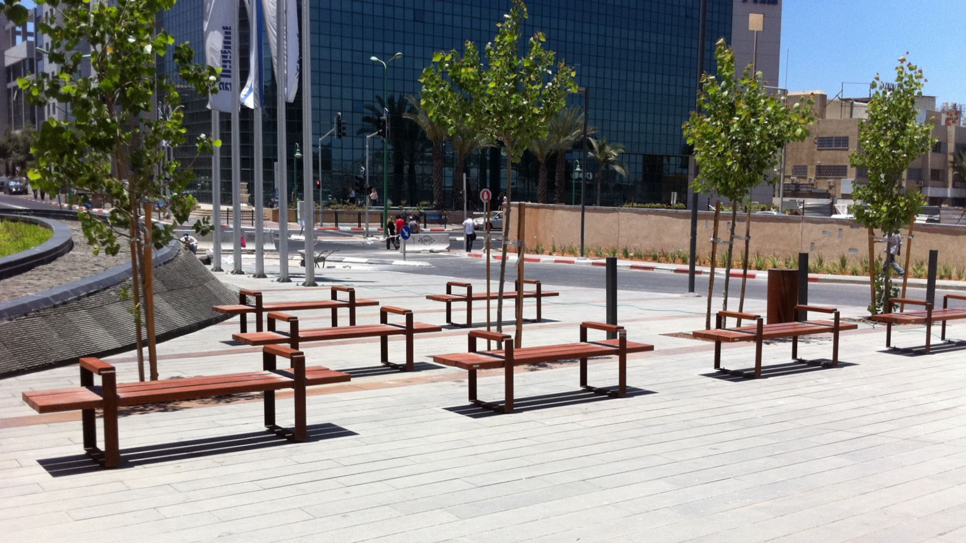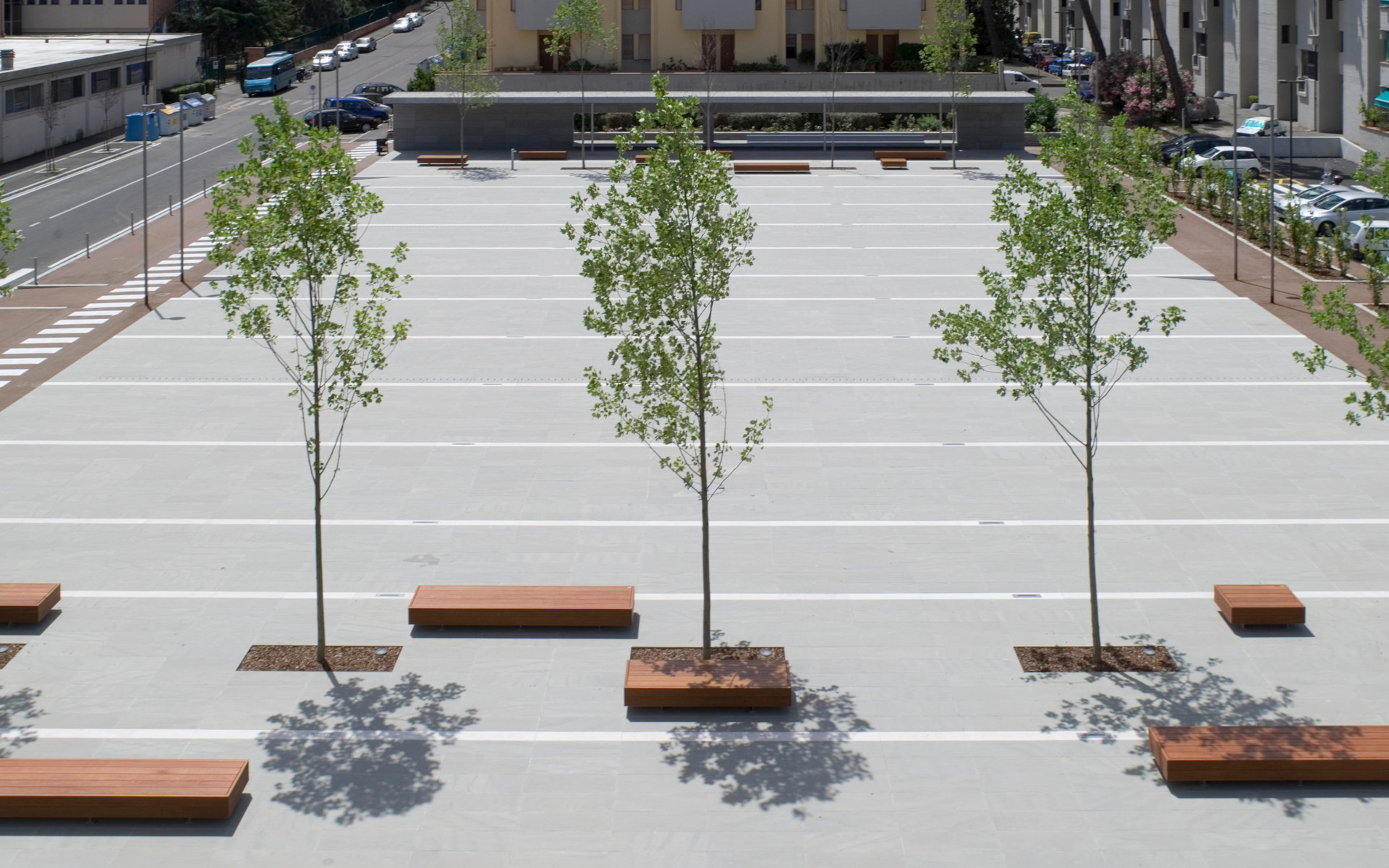 Bench collection featuring two painted cast aluminum side supports and a steel frame that supports the wooden seat. Available in two versions: with or without a wooden backrest, making it suitable for a variety of public space design needs.