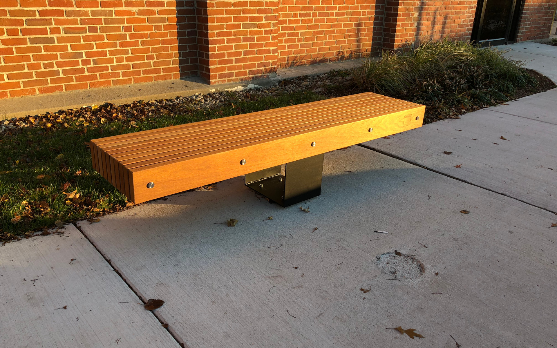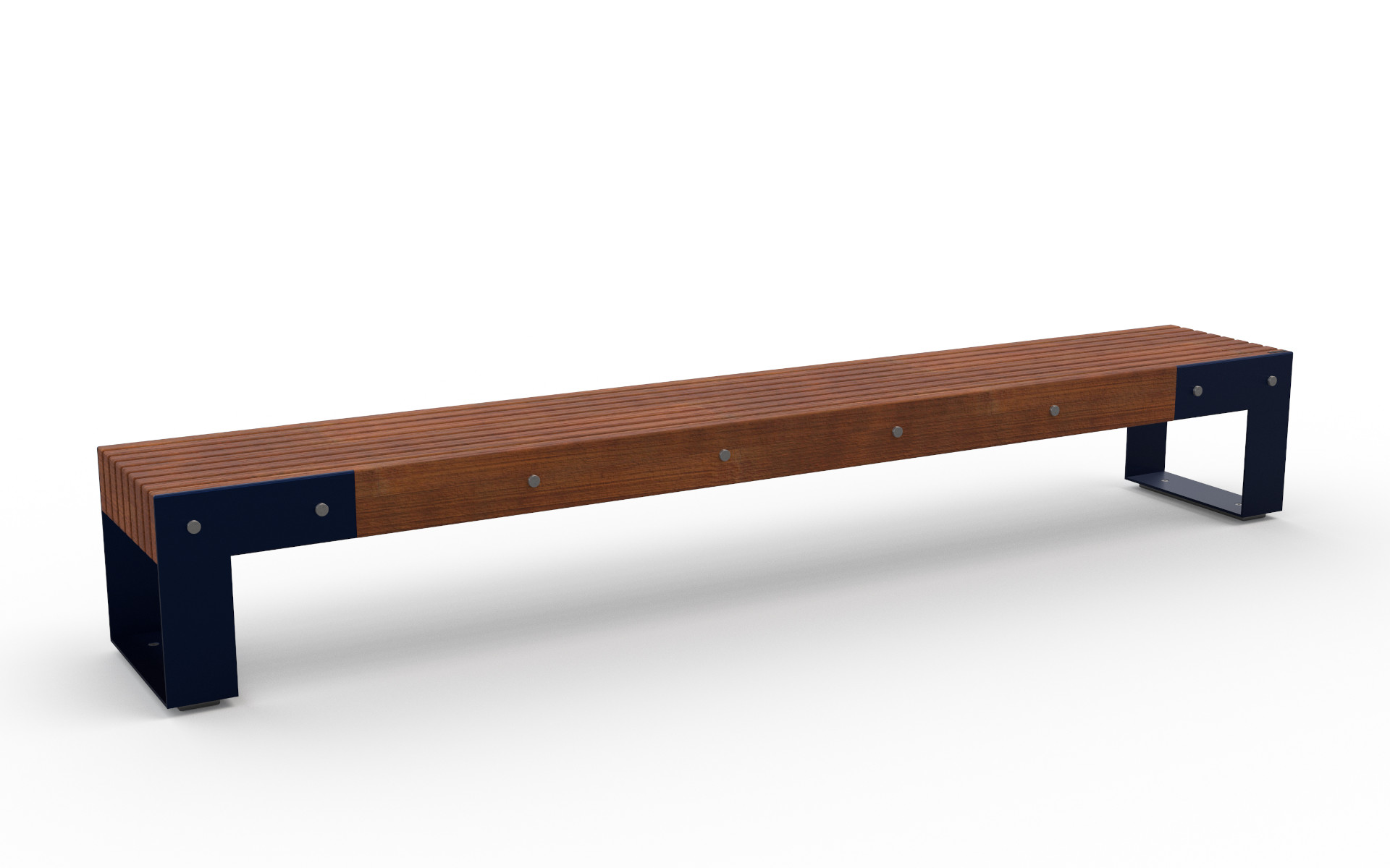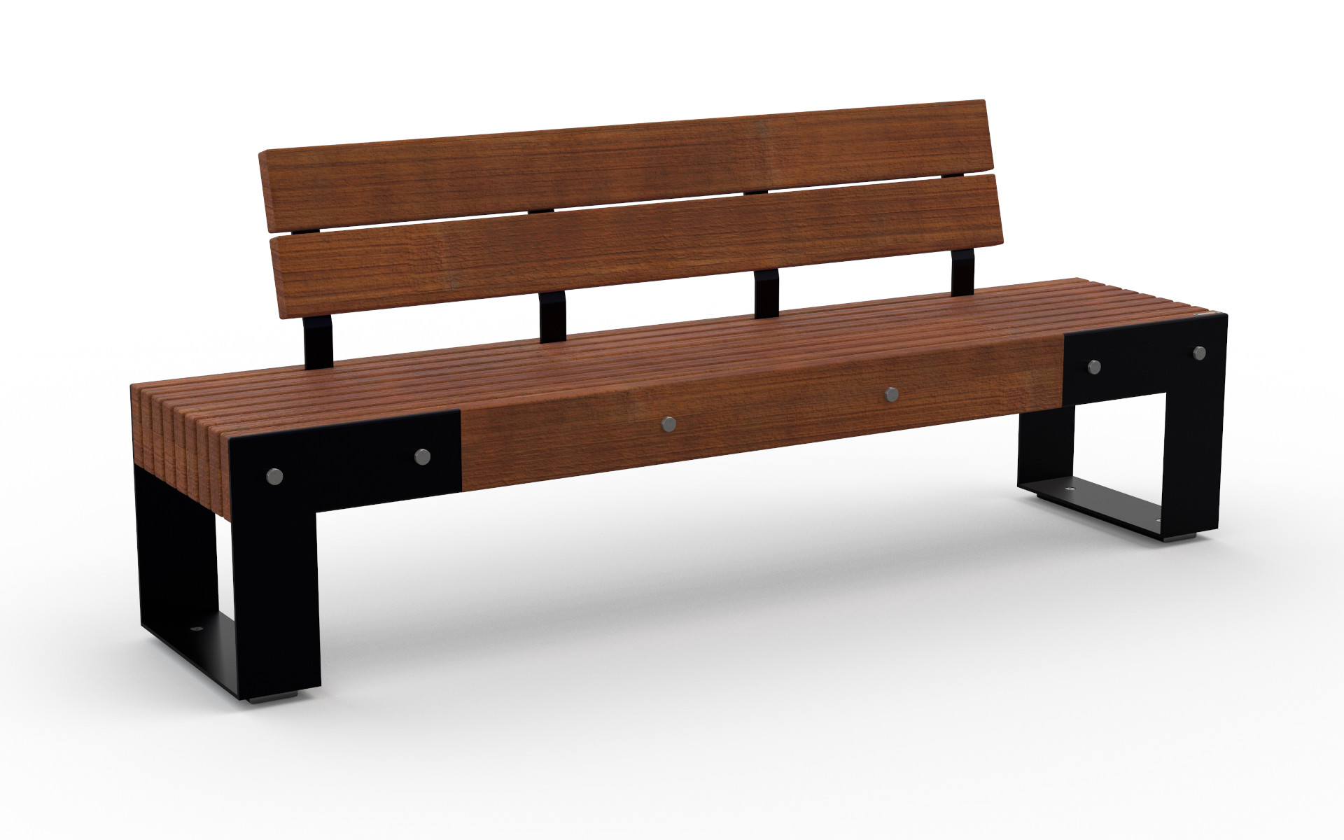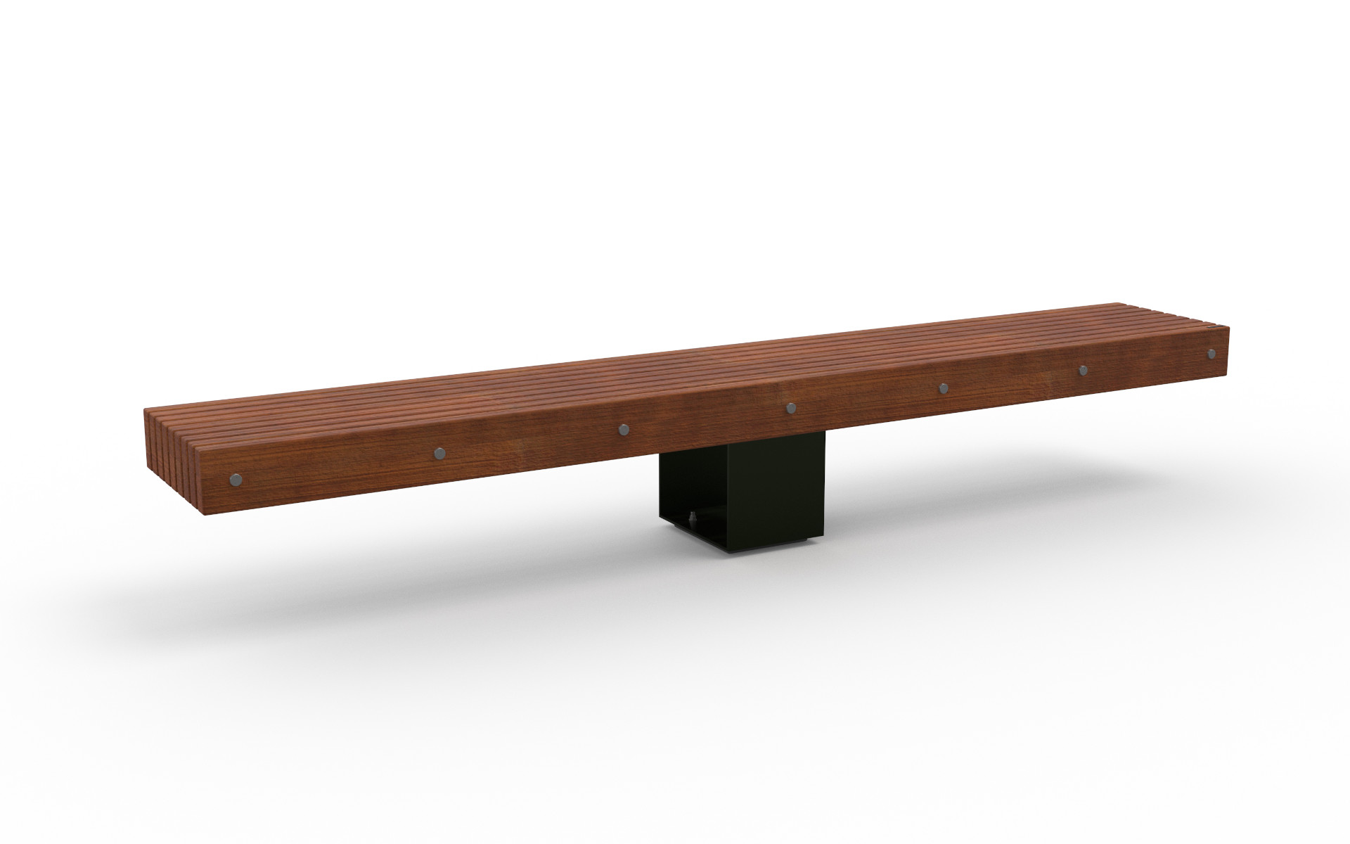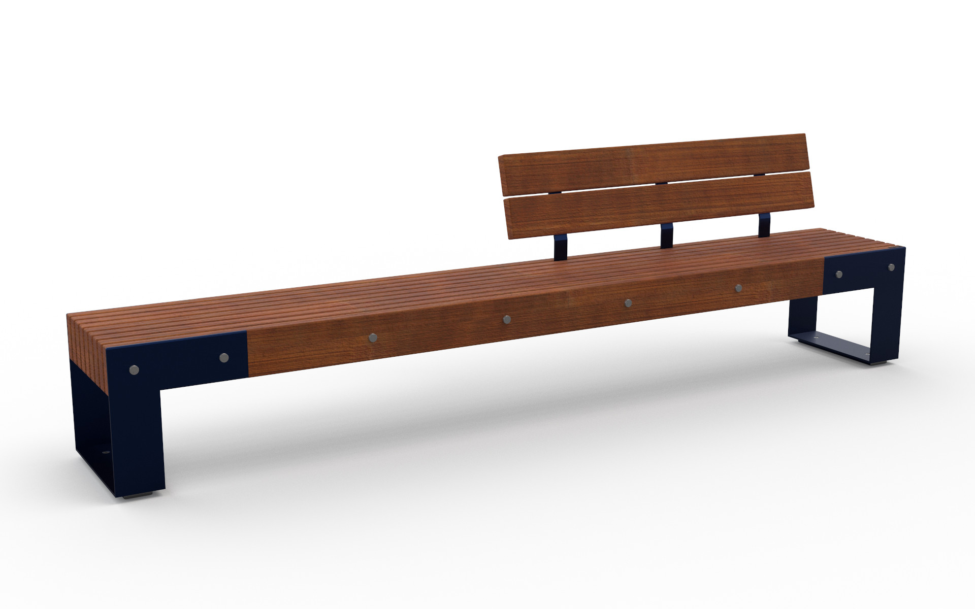 The bench collection features a seat made of wooden planks (hardwood or thermotreated pine wood), arranged vertically and connected by a steel connecting bar (painted or corten), with stainless steel end caps. The supports, also in steel, ensure stability. Available in two sizes, with or without a backrest, this bench combines functionality with a natural design, making it ideal for urban environments or public spaces.