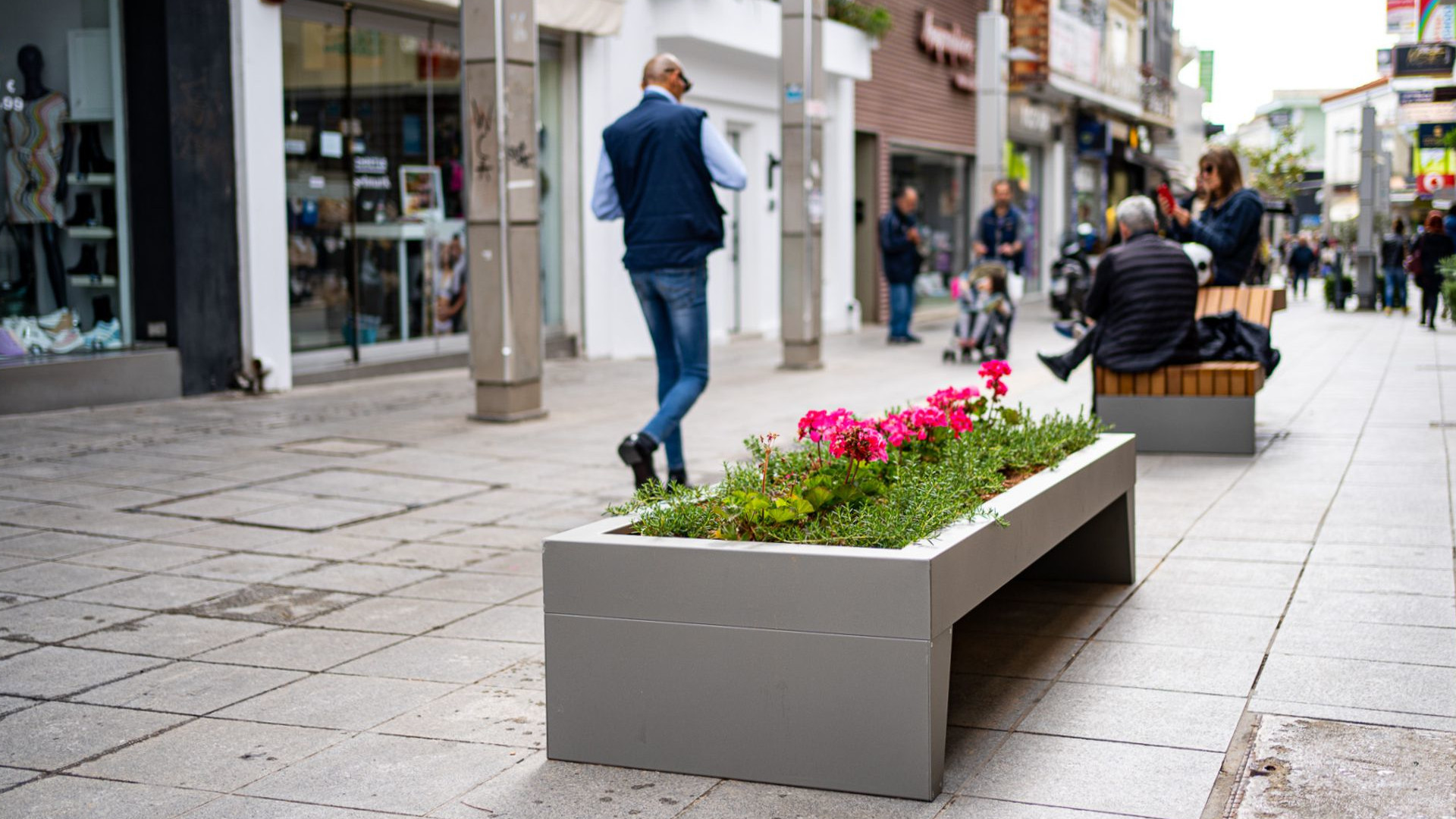The D model is a bench, without backrest, composed of a seat in HPC (High Performance Concrete) and two supports in powder coated aluminum.