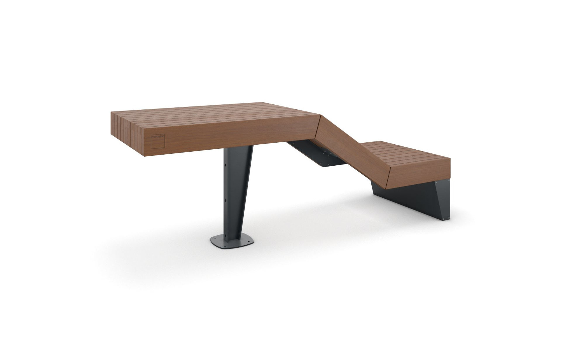 The W model is a bench without backrest, composed of a wooden seat and two supports in powder coated aluminum.