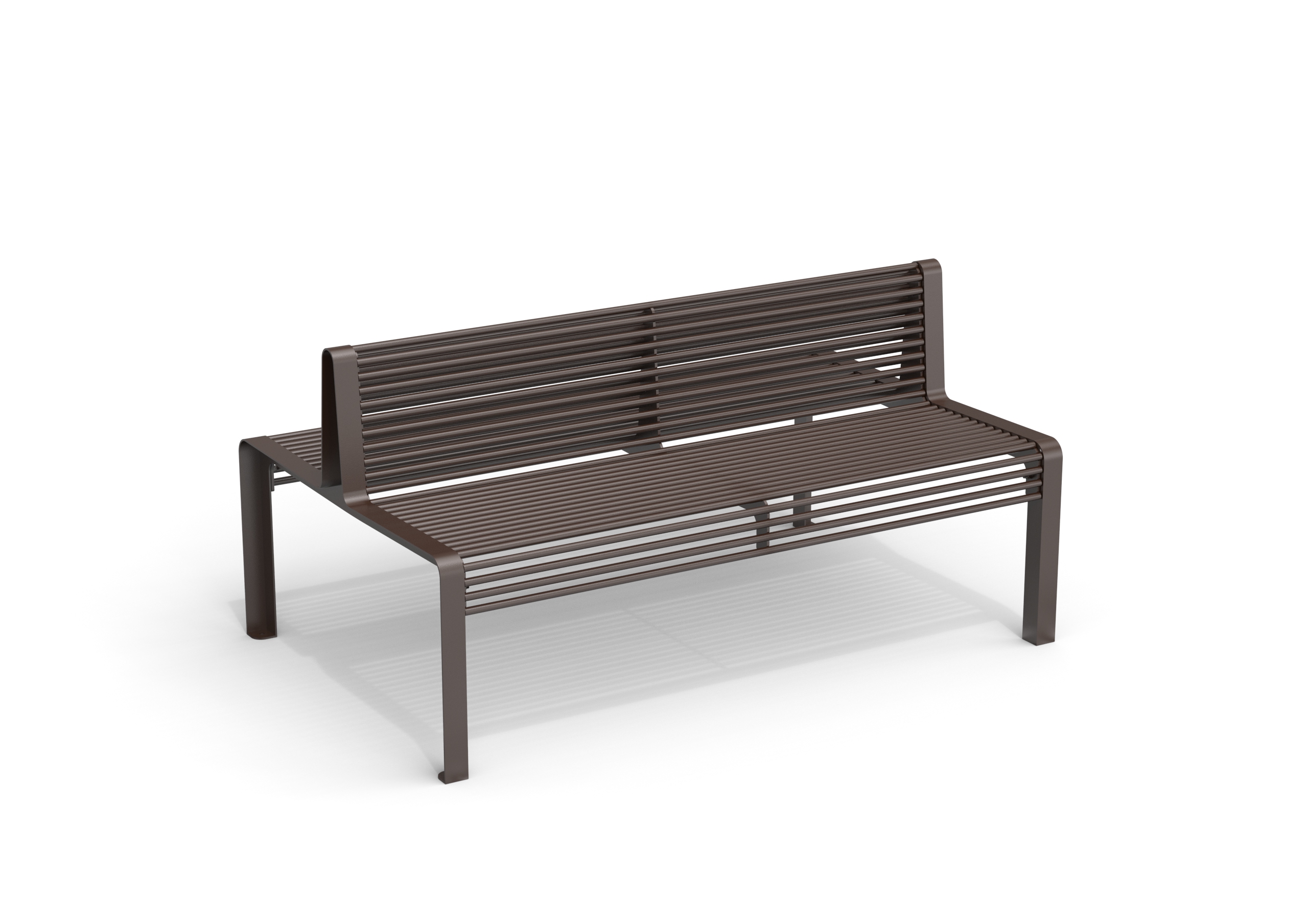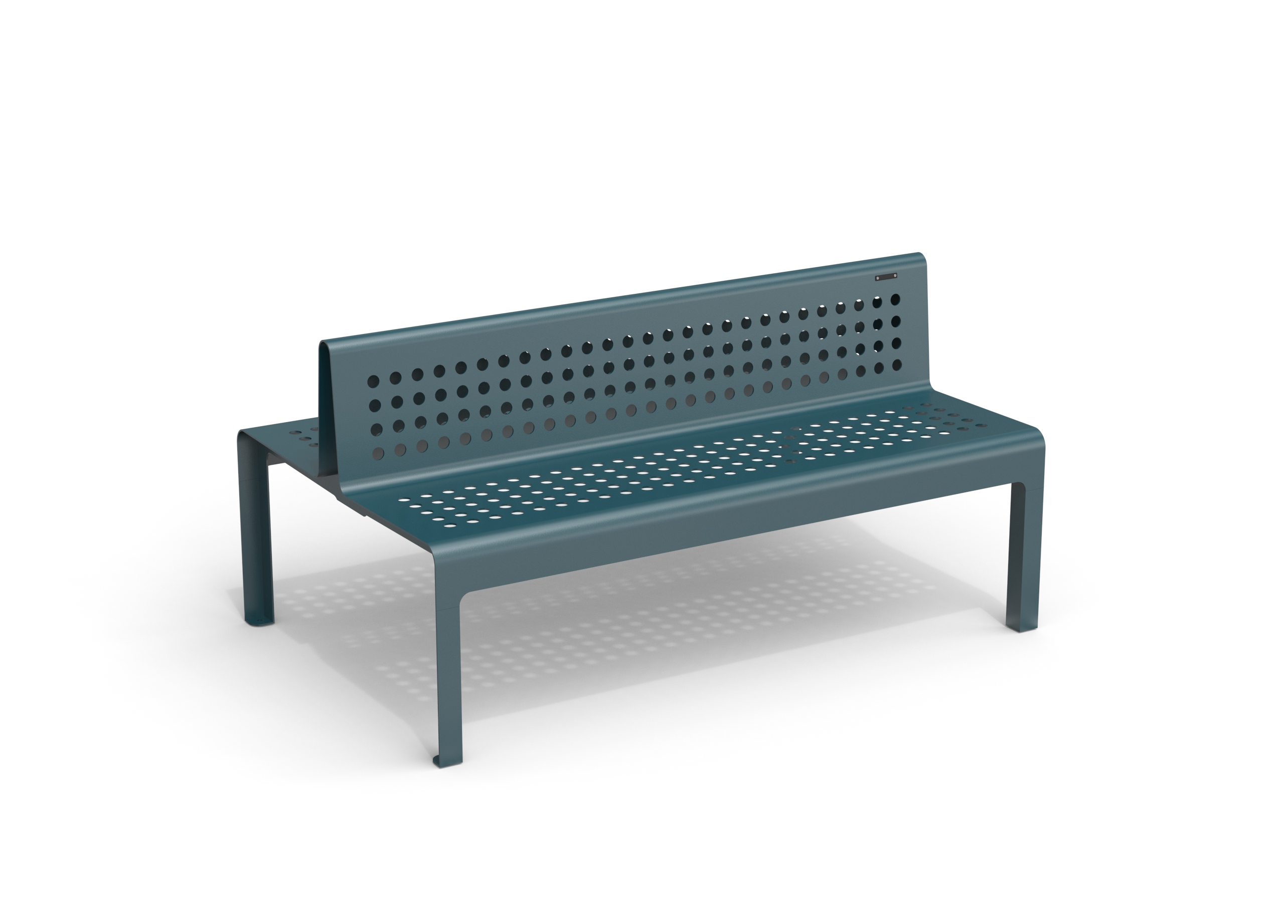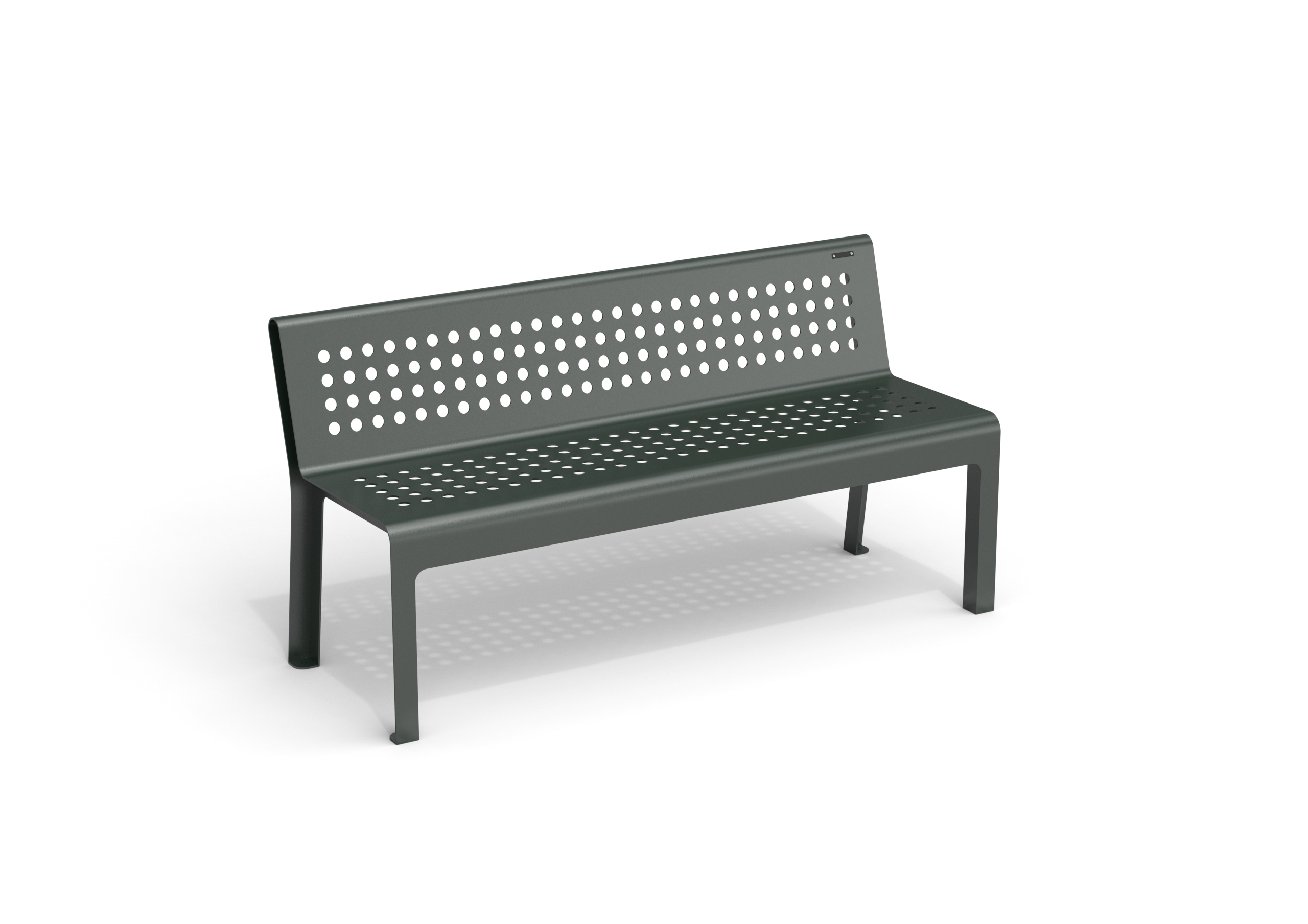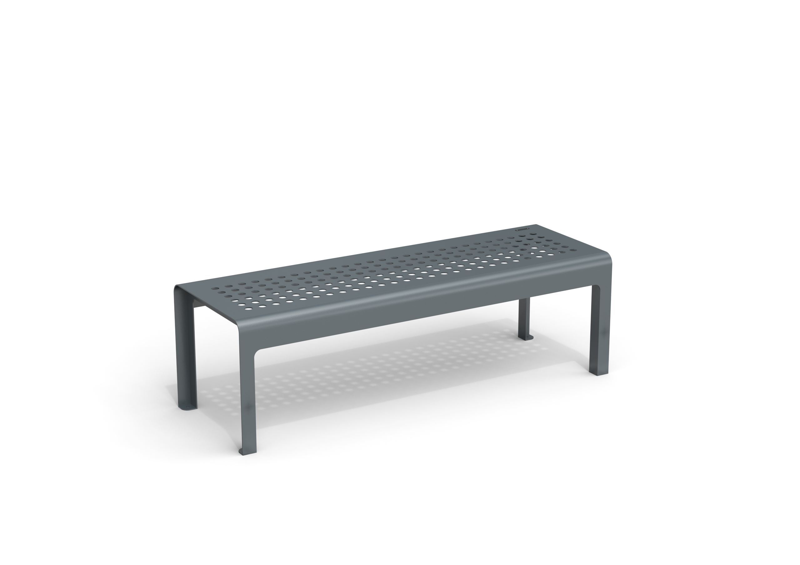 A collection of powder-coated steel benches with a minimalist and contemporary design, available with or without backrest. Models MSD, MP, and MS are crafted from a single laser-cut steel sheet, featuring elegant circular perforations that add visual lightness and urban appeal. Models MSDT, MPT, and MST include a seat made of steel tubes supported by two sheet metal sides. MSD and MSDT models offer double-sided seating, making them ideal for open, central areas where seating is required on both sides.