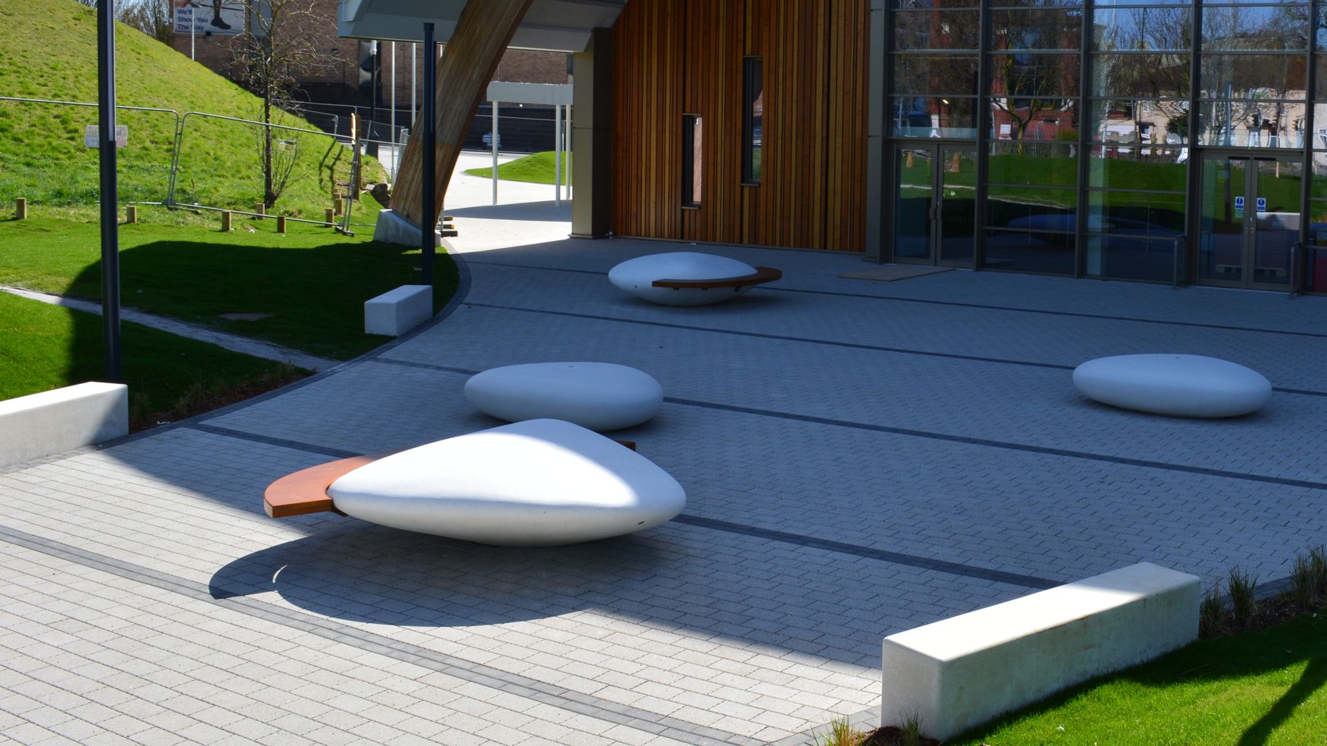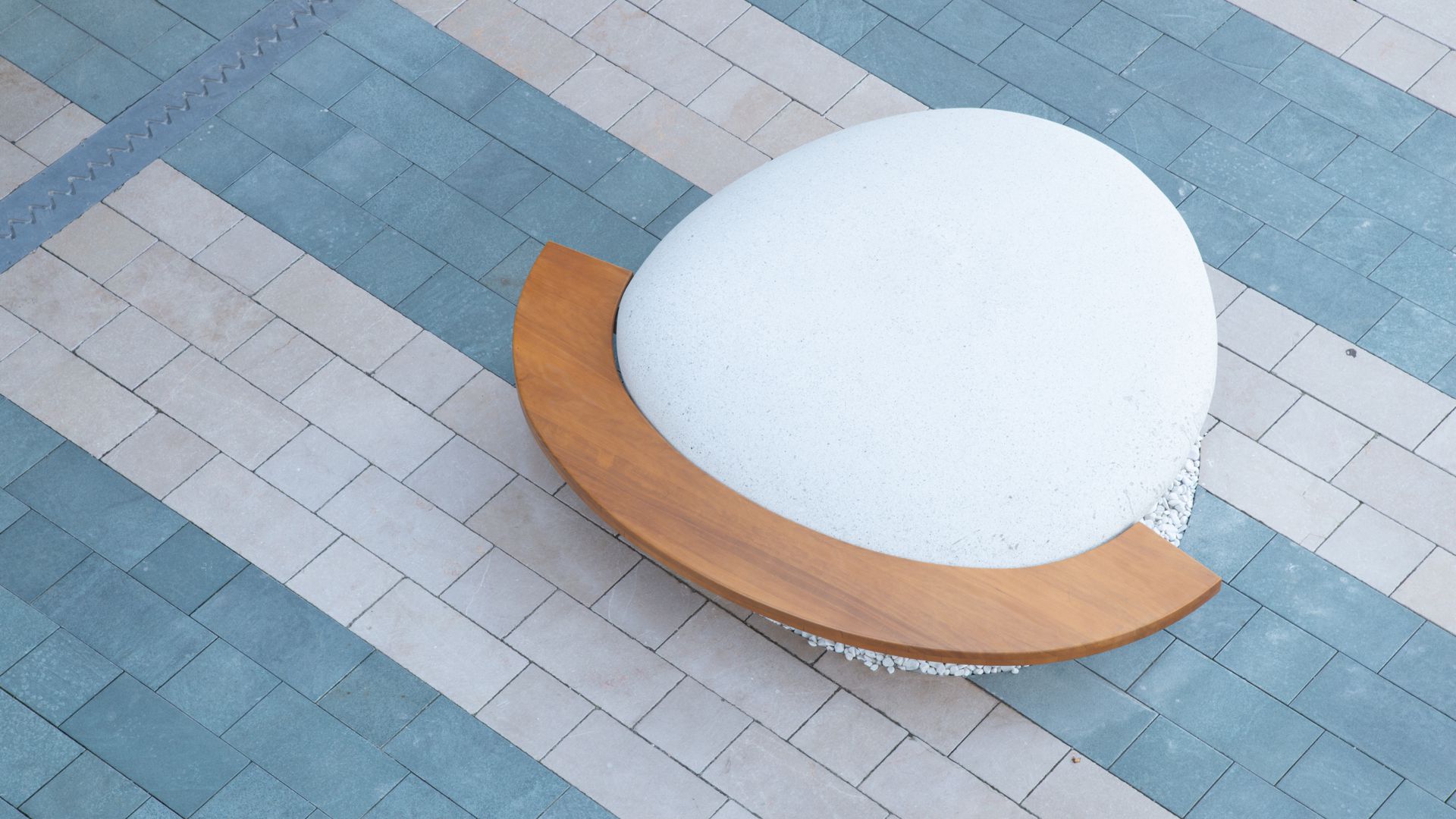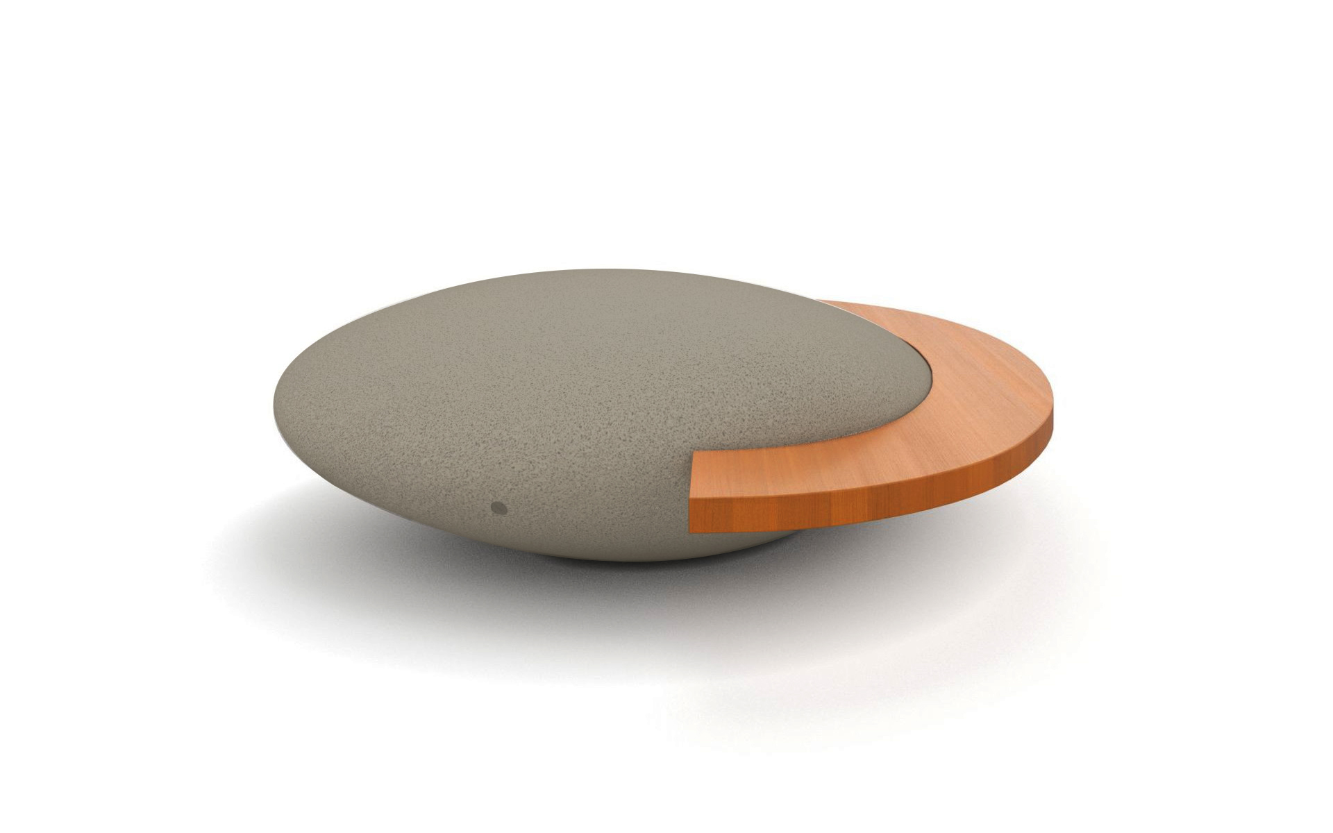 Freeform monolithic seat made of RCP (Reconstituted Stone), designed to blend seamlessly into contemporary public spaces. It is prepared for ground installation through leveling base cementation and is also available in a version with a bench made of water-based painted Okumè wood, adding a warm, natural touch to its robust structure. A durable and versatile solution for furnishing urban and landscape areas with style and functionality.