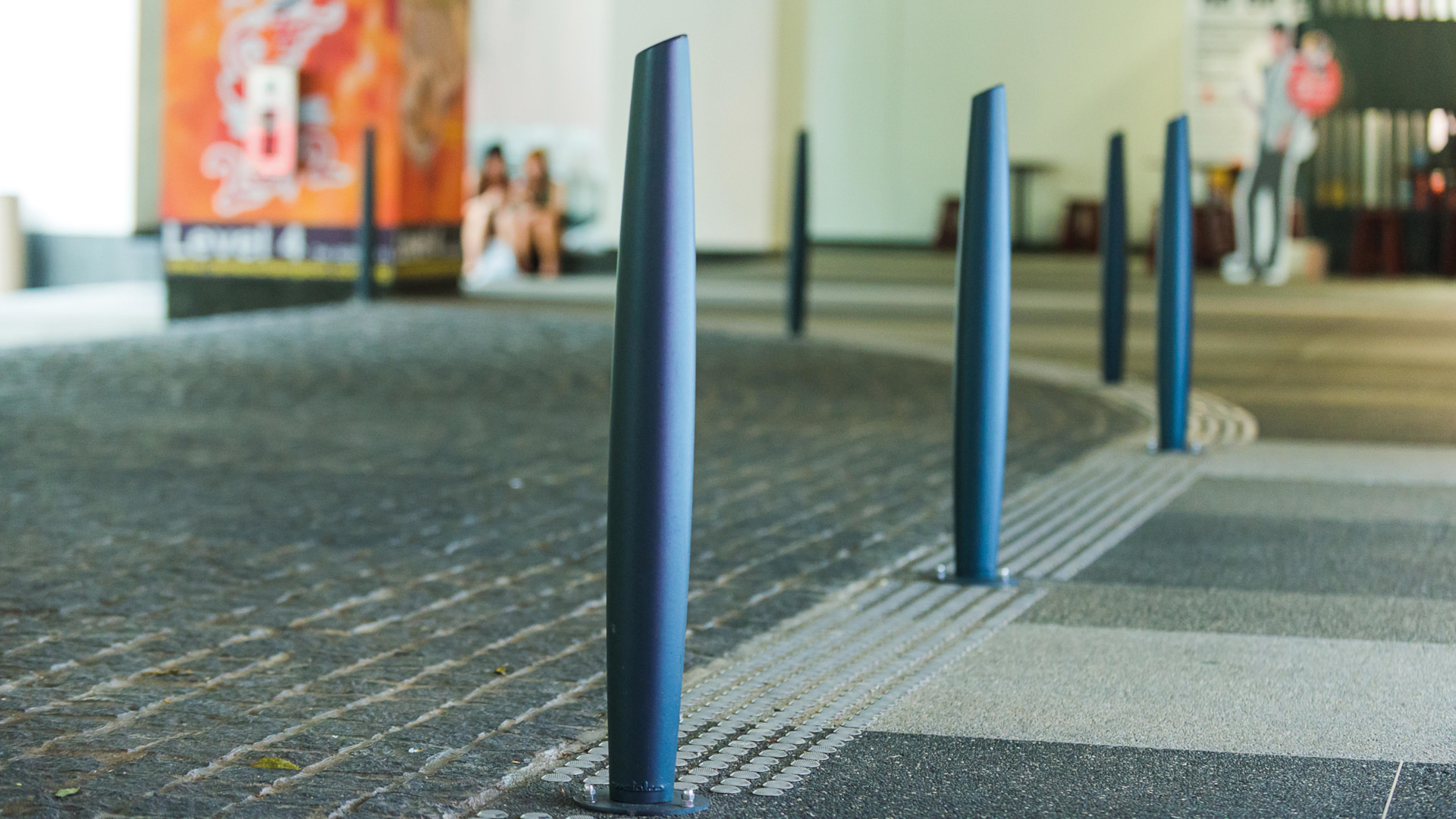 Pedestrian bollard made of aluminum casting, equipped with an internal steel insert for enhanced stability and durability.