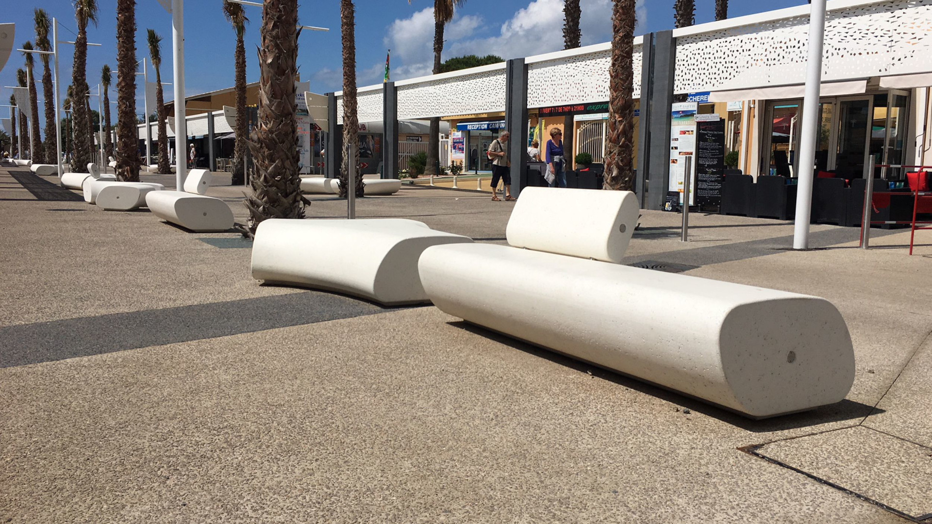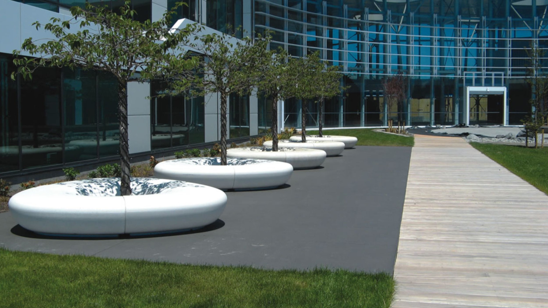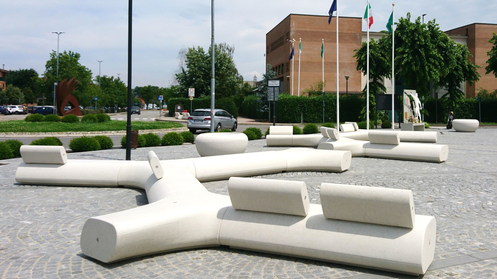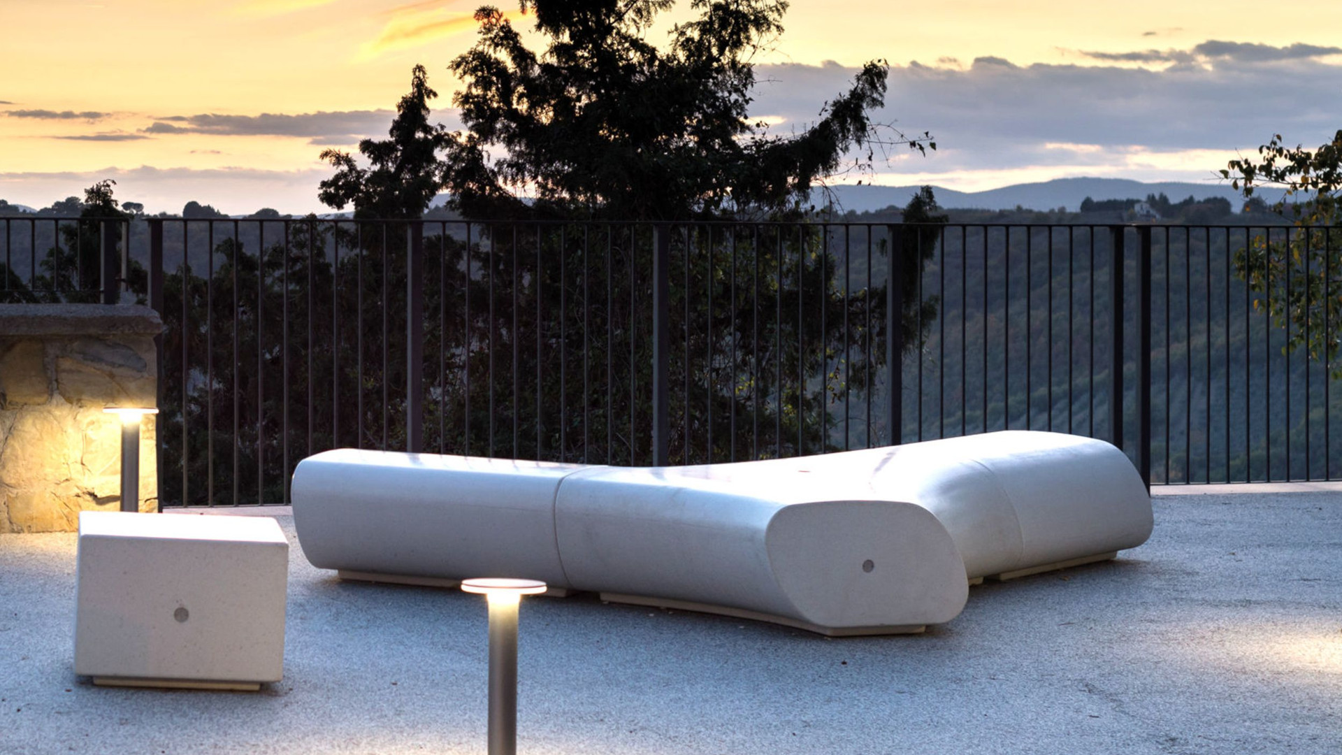Collection of monolithic and modular seats made of PDM (Reconstituted Stone). Available in various linear and curved models. The curved module features a flat hardwood seat on the outer side. Can be combined with the LORENZ and TREE WIRE collections.