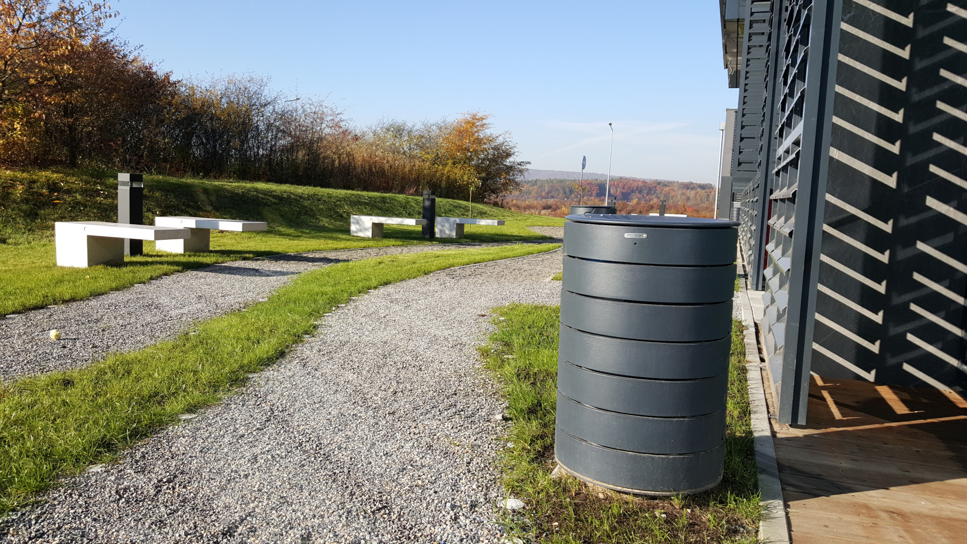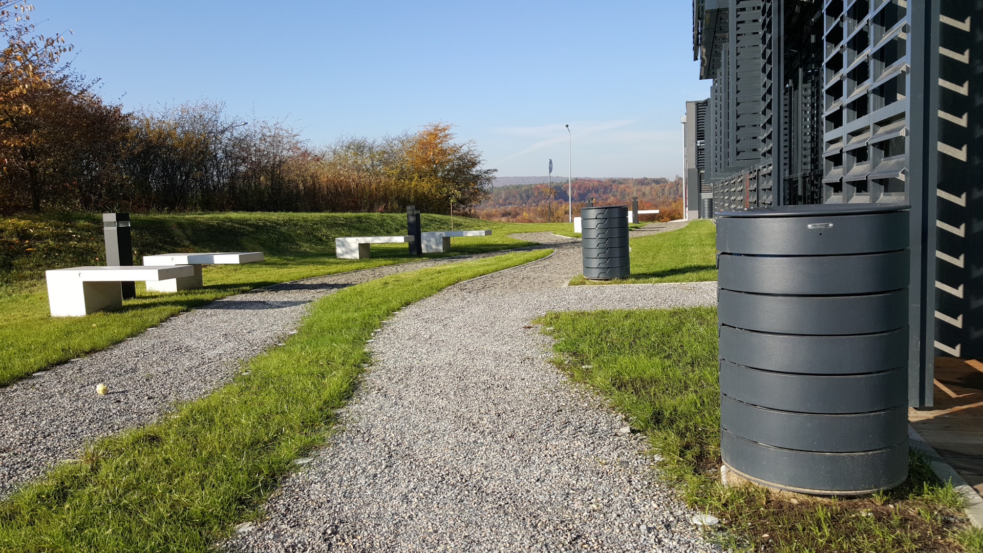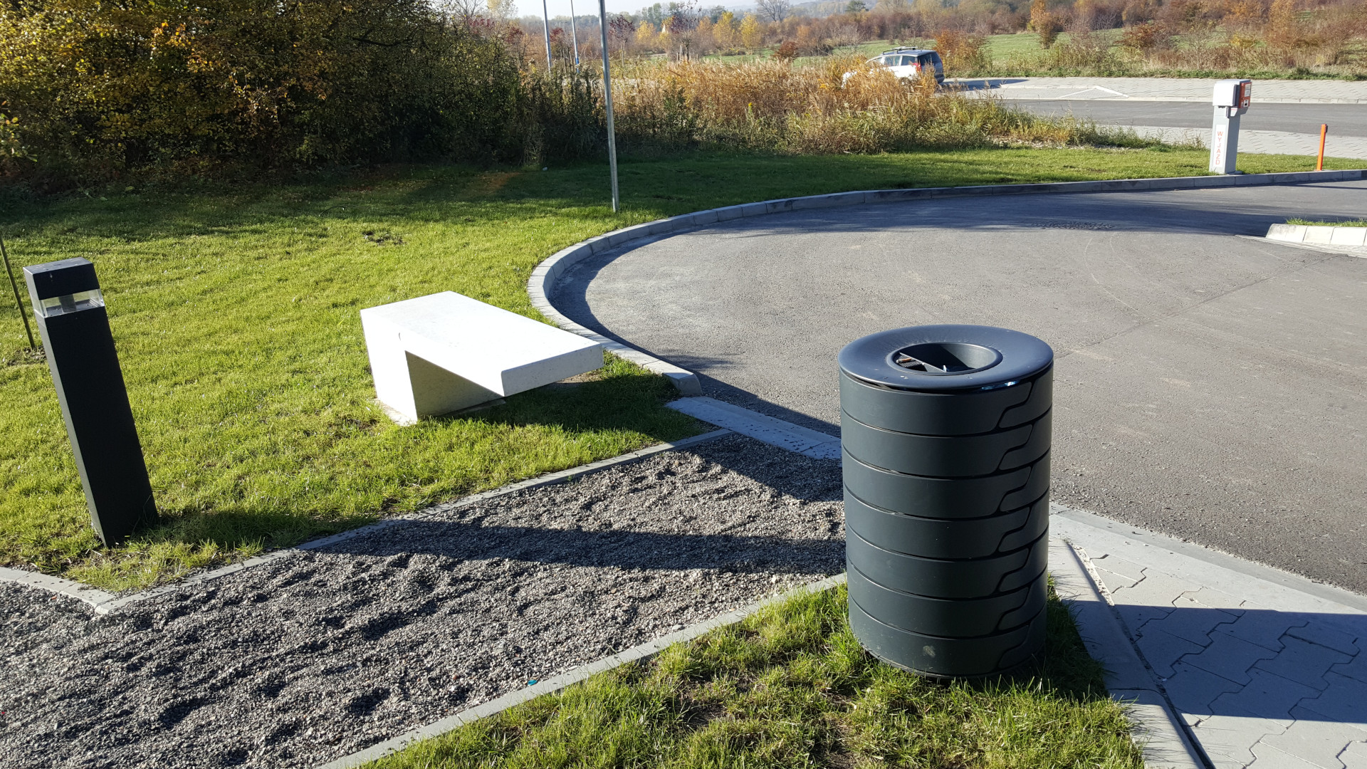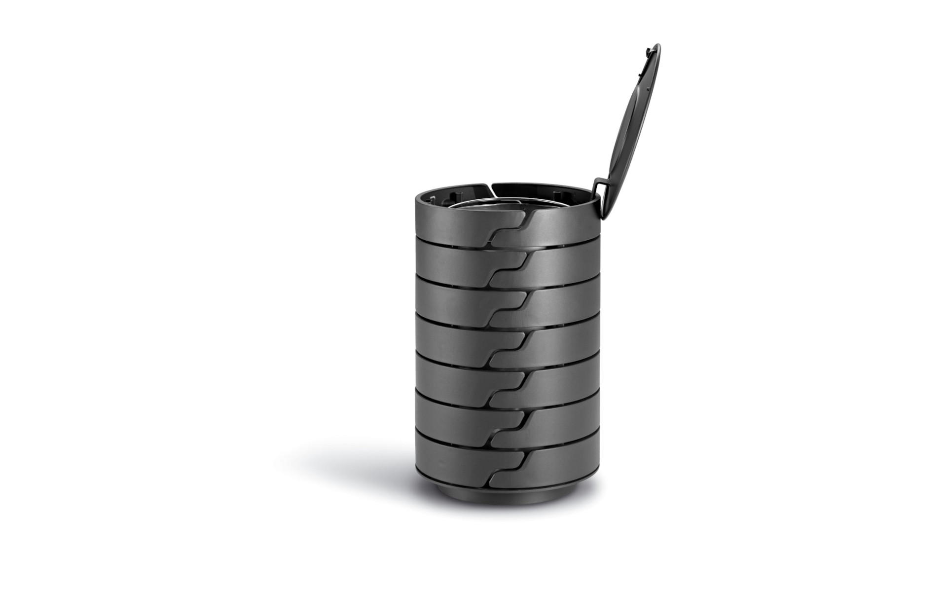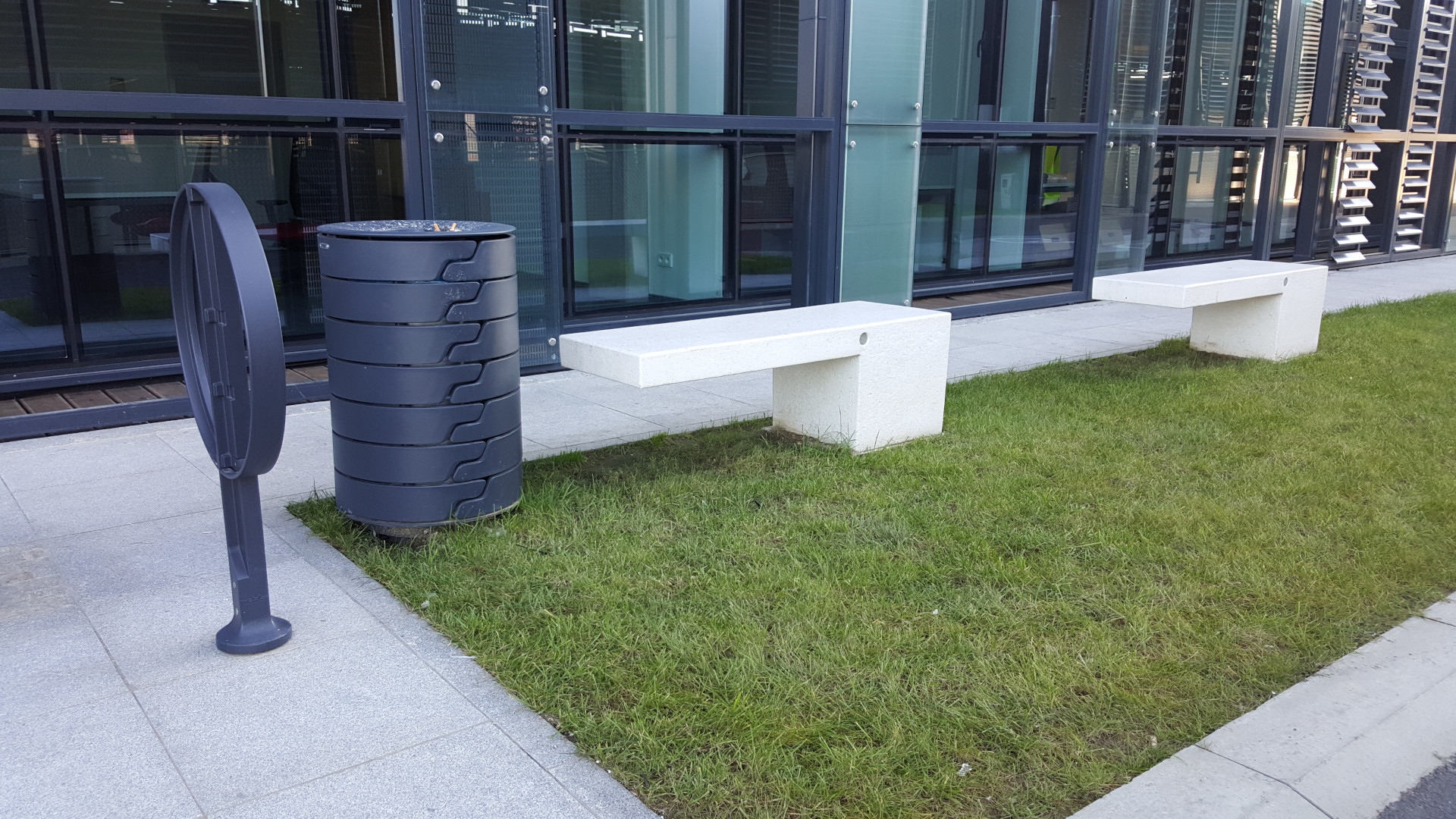 Cylindrical trash bin with an elegant and functional design, featuring a steel supporting structure and a perimeter coating made of cast aluminum elements, ensuring strength and durability. The steel base provides stability, while the steel lid with a central opening, secured with a snap-lock, allows easy access for waste management. Equipped with an internal container, this bin is perfect for public spaces and outdoor areas, combining aesthetics and practicality.