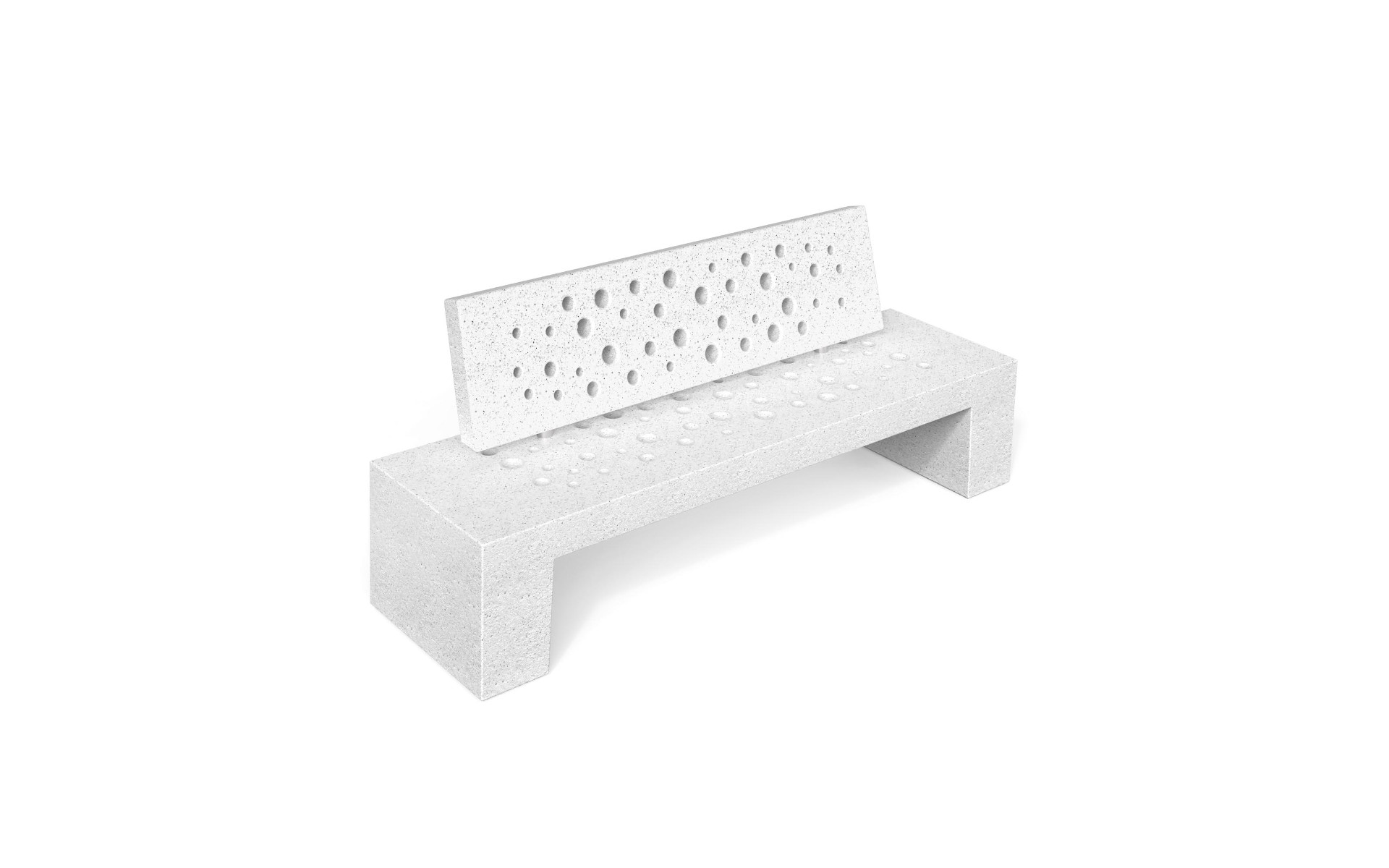 La collezione di panchine a ponte in HPC (High Performance Concrete) presenta una seduta decorata con fori di varie misure. Disponibile in due versioni, una con schienale e l’altra senza, anche lo schienale è decorato con fori, creando un effetto armonioso e distintivo.