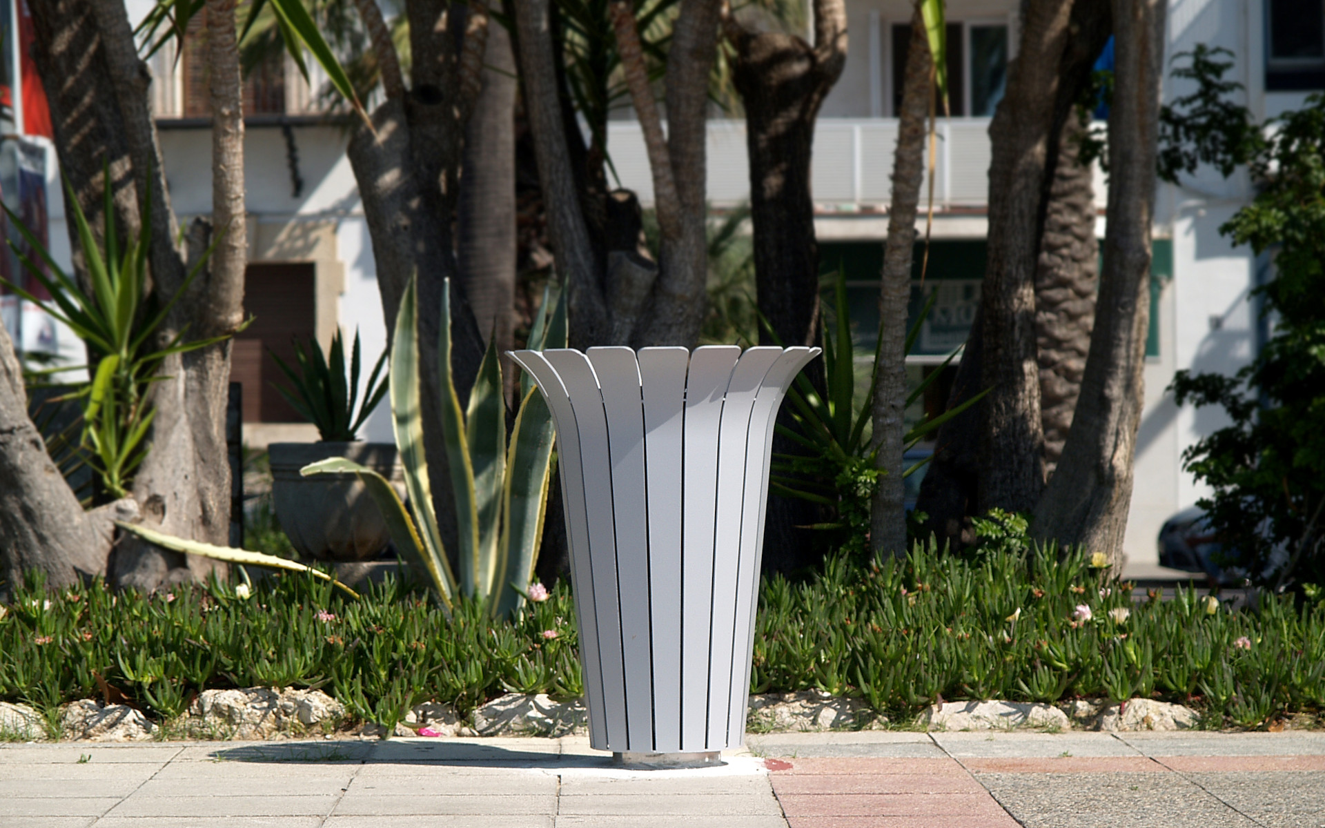 Linee leggere e forma troncoconica definiscono questo cestino in acciaio, progettato per integrarsi con discrezione e stile negli spazi pubblici. La struttura in tondino assicura solidità e trasparenza visiva, mentre la base in lamiera conferisce stabilità all’insieme. Dotato di anello reggisacco, garantisce praticità nelle operazioni di svuotamento, unendo funzionalità e design in un unico elemento d’arredo urbano.