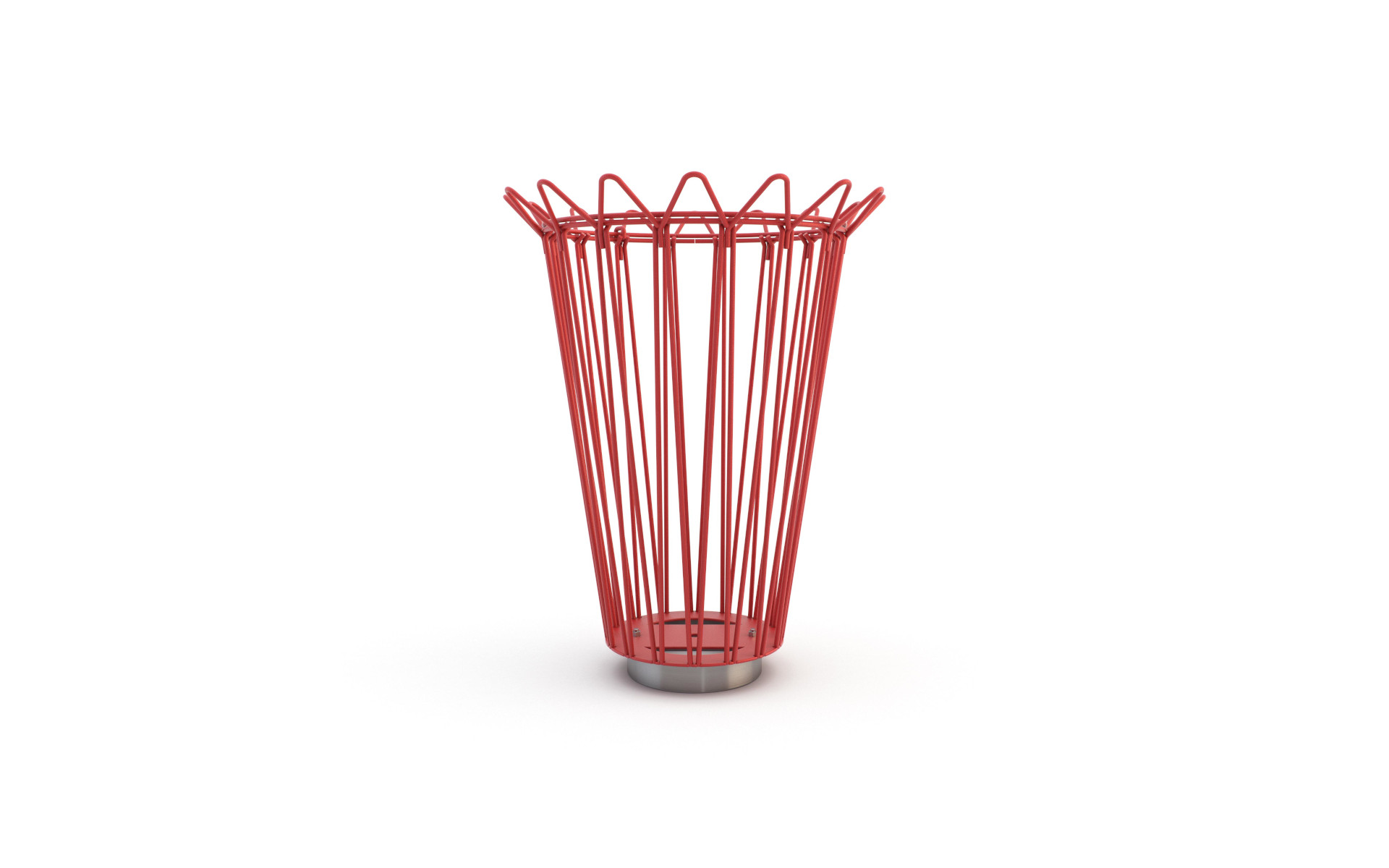 Linee leggere e forma troncoconica definiscono questo cestino in acciaio, progettato per integrarsi con discrezione e stile negli spazi pubblici. La struttura in tondino assicura solidità e trasparenza visiva, mentre la base in lamiera conferisce stabilità all’insieme. Dotato di anello reggisacco, garantisce praticità nelle operazioni di svuotamento, unendo funzionalità e design in un unico elemento d’arredo urbano.