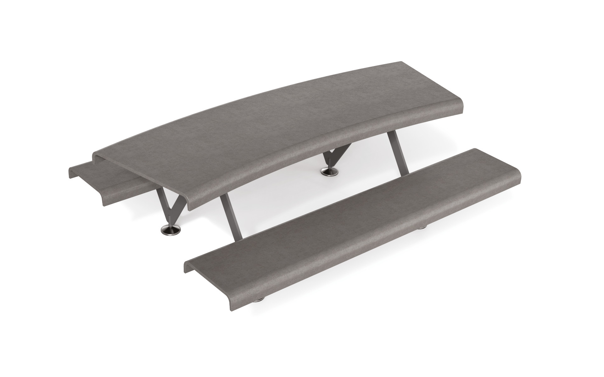 Questa collezione di tavoli modulari con sedute integrate rappresenta una sintesi perfetta tra solidità, design e versatilità. Realizzati in cemento UHPC (Ultra High Performance Concrete) o nella combinazione di acciaio e legno, i tavoli poggiano su una robusta struttura in lamiera d’acciaio verniciato di grosso spessore, pensata per resistere nel tempo e negli spazi pubblici ad alta frequentazione. Disponibili in versione lineare o curvilinea, si adattano con naturalezza a diverse configurazioni e contesti urbani, creando luoghi accoglienti per la socialità, la sosta e l’interazione.