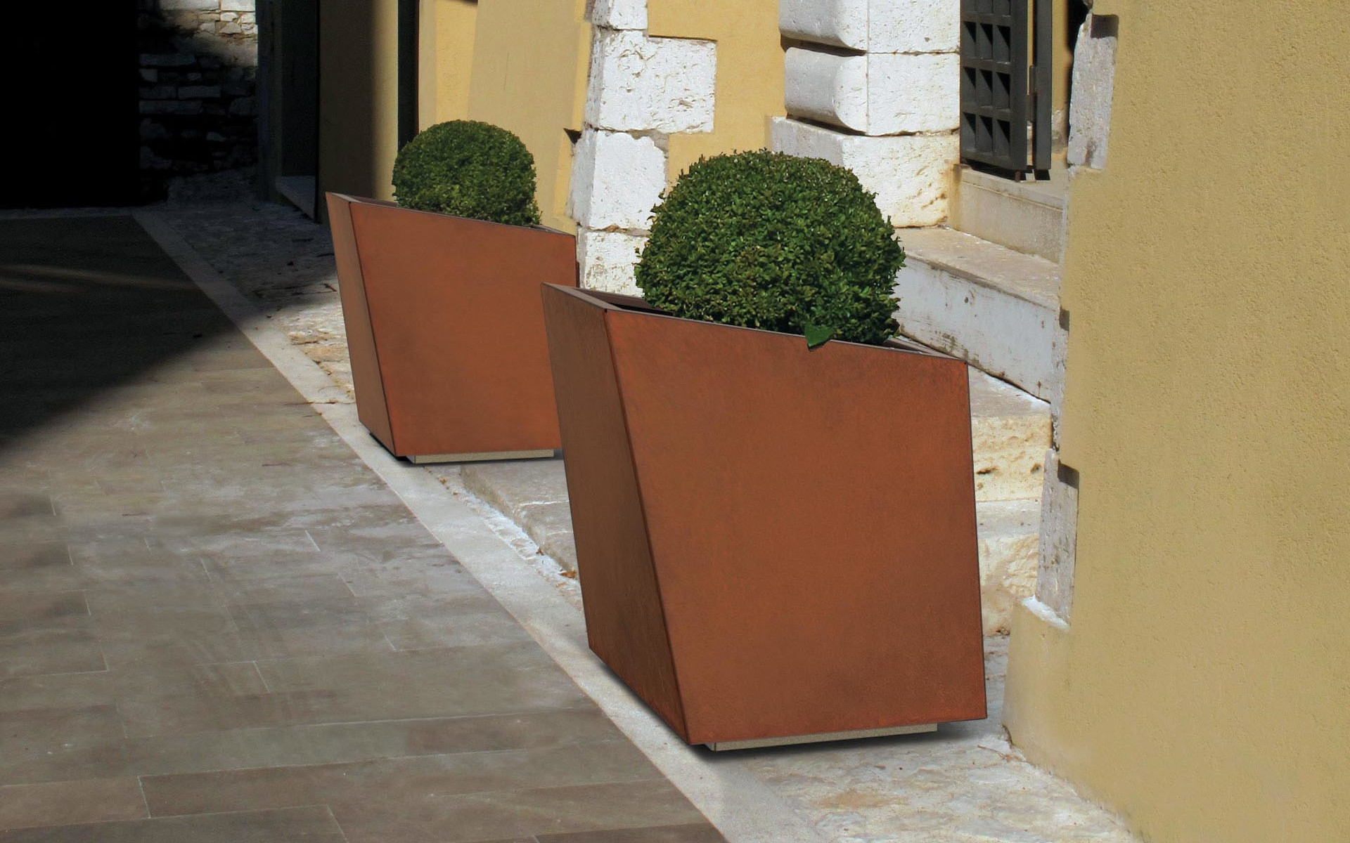 La collezione di fioriere di forma irregolare offre una proposta innovativa per arricchire gli spazi urbani con eleganza e versatilità. Realizzate in lamiera d’acciaio verniciato, corten o inox, queste fioriere sono dotate di una base d’appoggio regolabile, che ne aumenta la stabilità e la funzionalità. Modulari per natura, permettono di combinare diversi modelli per creare composizioni lineari o a isola, dando vita a giardini urbani dinamici e personalizzabili.