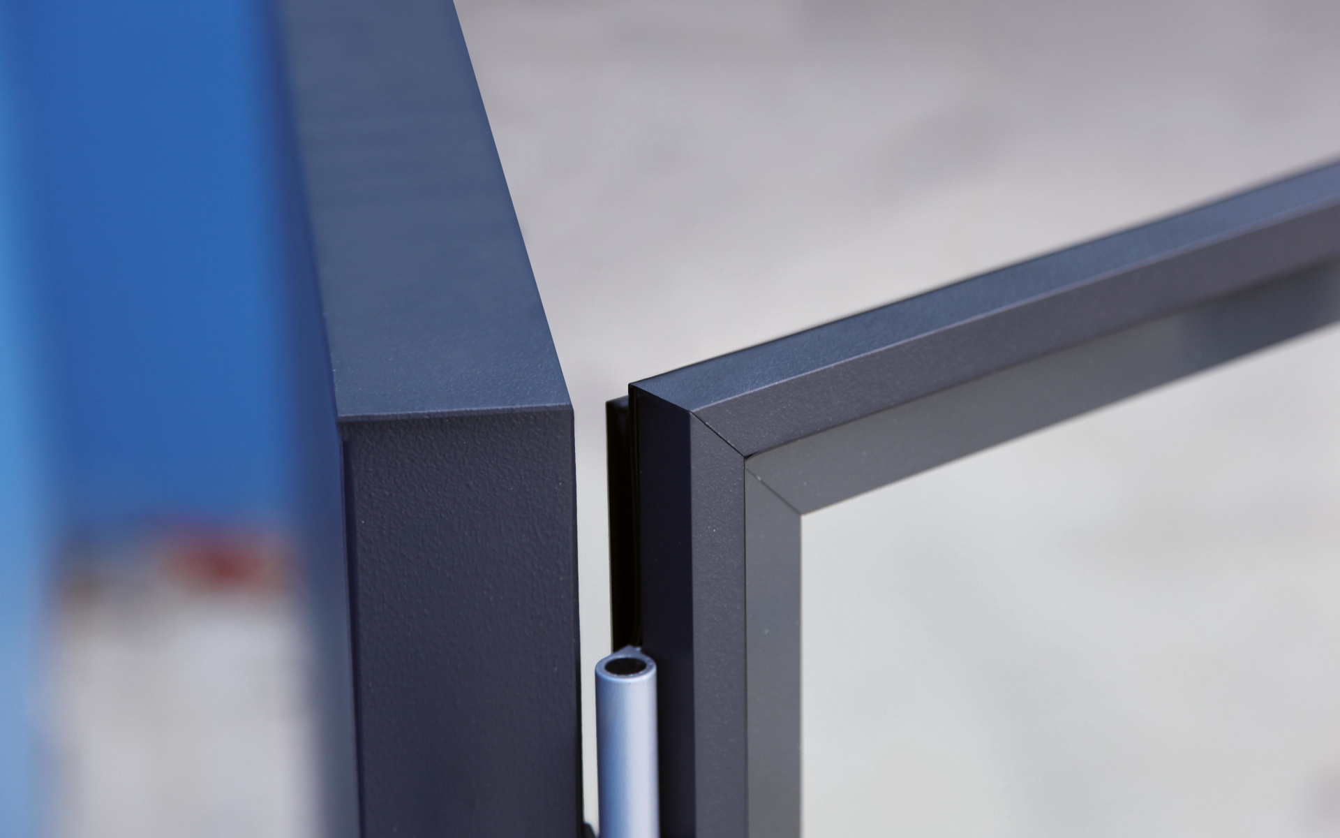 Bacheca monofacciale con vetrina composta da una struttura portante formata da due supporti verticali in tubolare e piatto d’acciaio e da un pannello in lamiera d’acciaio. La superficie espositiva è protetta da un’anta costituita da un estruso di alluminio con serratura laterale a box triangolare e da una lastra in vetro antisfondamento. Disponibili due modelli con superficie espositiva 700×1000/1400×1000 mm.
