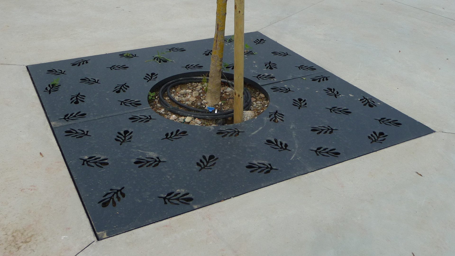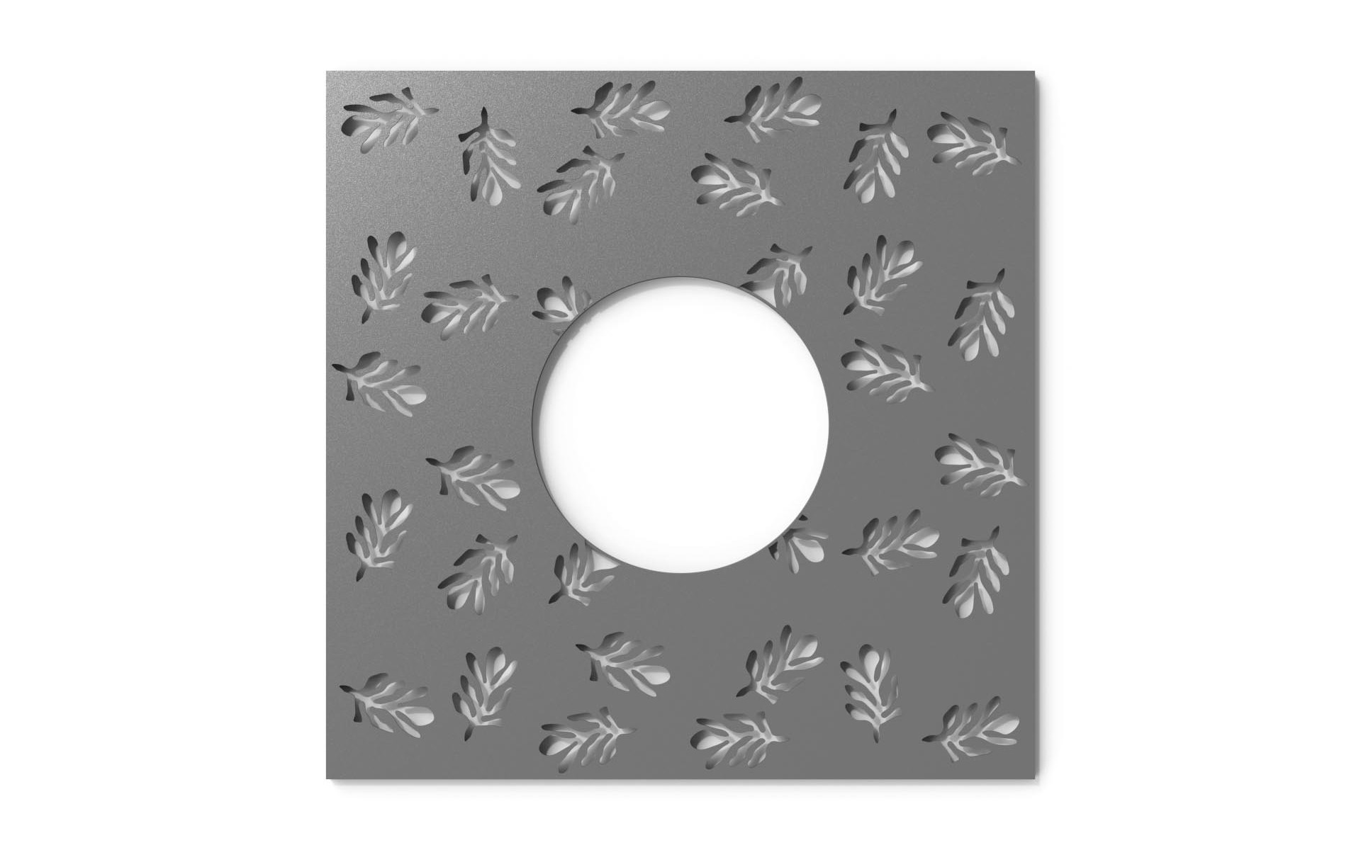 Salvapiante di forma quadrata con foro circolare, realizzato in lamiera d’acciaio decorato al laser con un elegante motivo floreale. Il design si compone di due metà, che possono essere facilmente fissate tra loro tramite viti, e include rinforzi in piatto d’acciaio posizionati internamente e lungo il perimetro. Disponibile in diverse versioni, che variano per misura e diametro del foro, il salvapiante è anche accessoriabile con un controtelaio, offrendo soluzioni versatili per ogni esigenza di spazio verde.