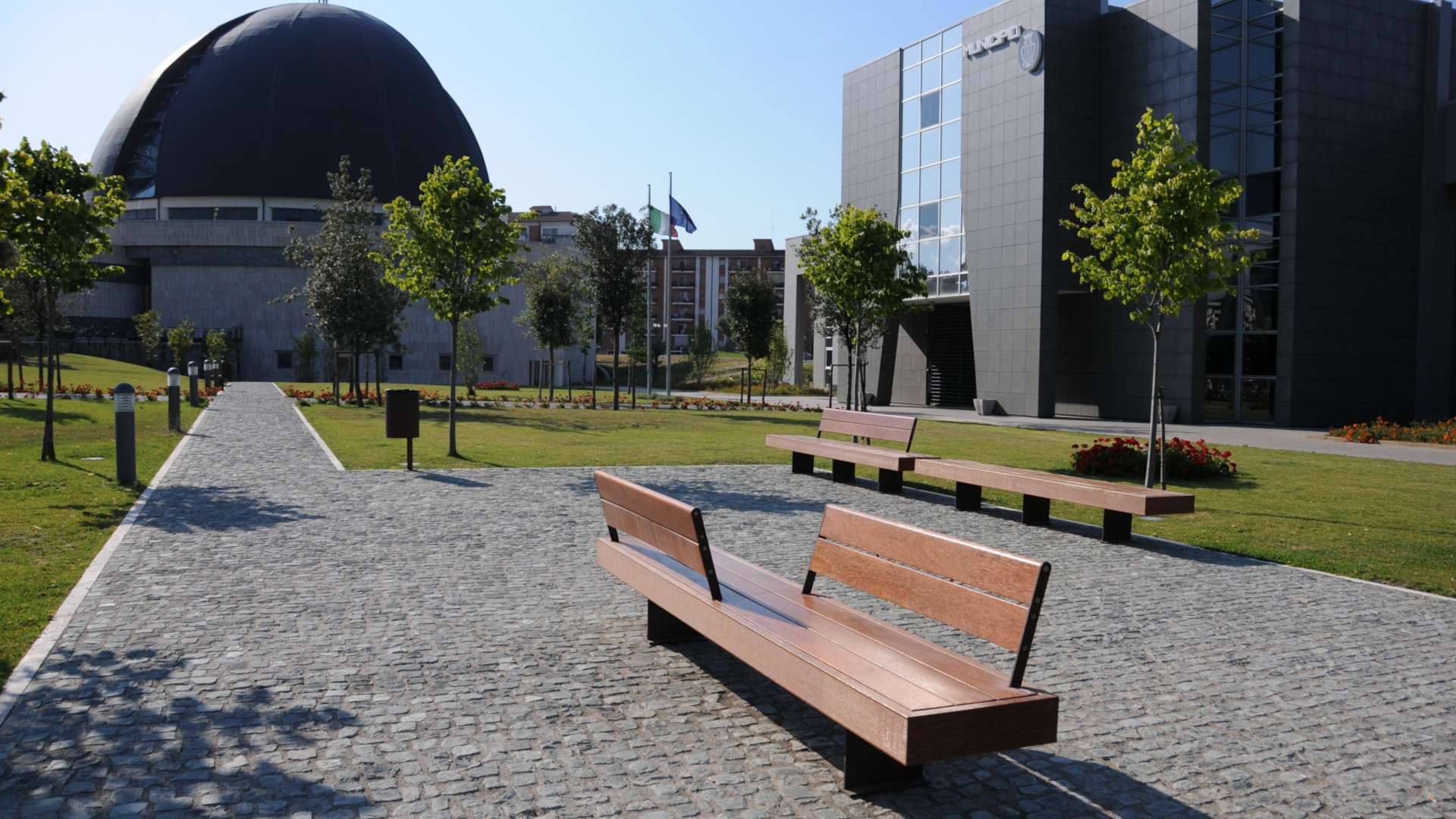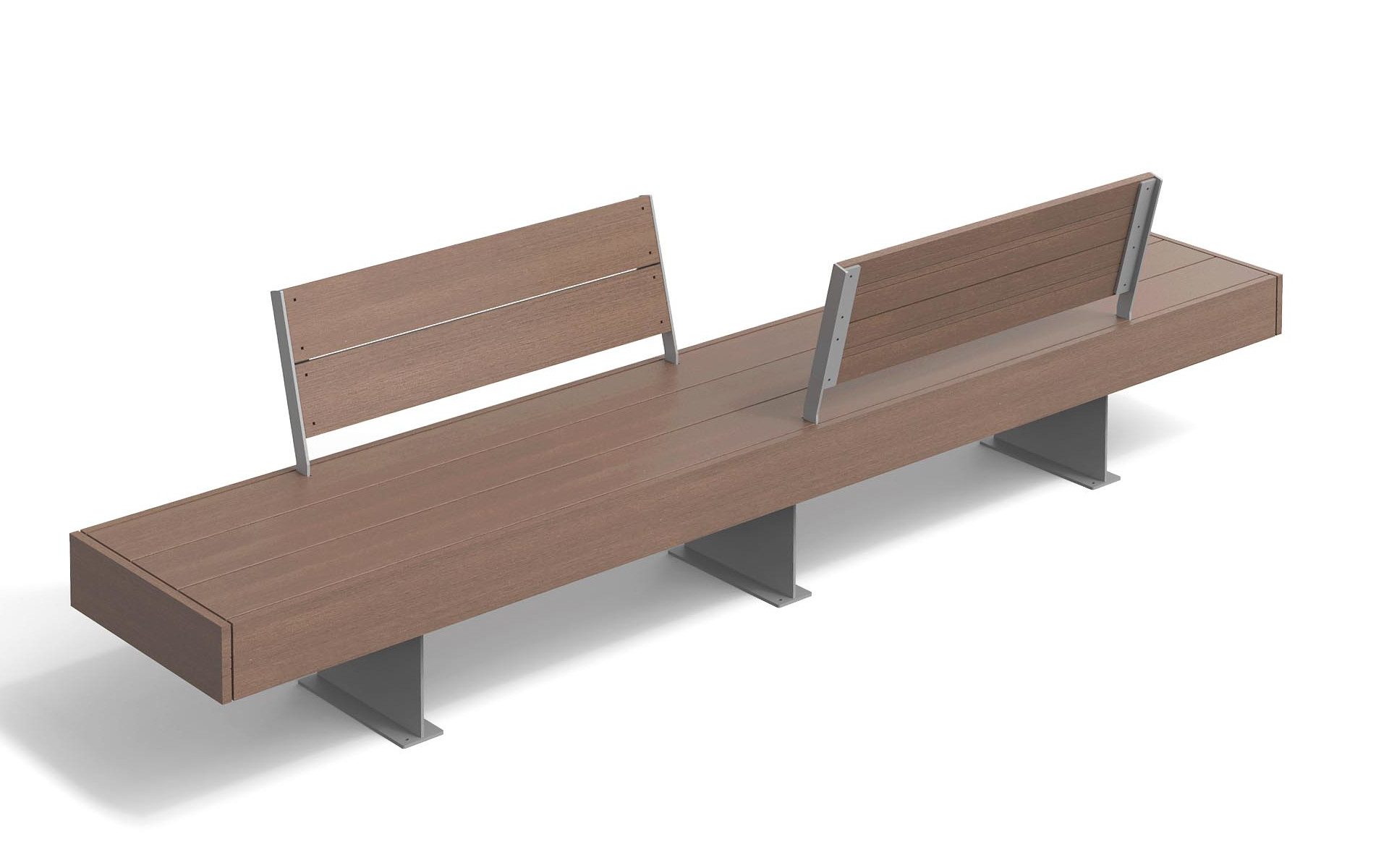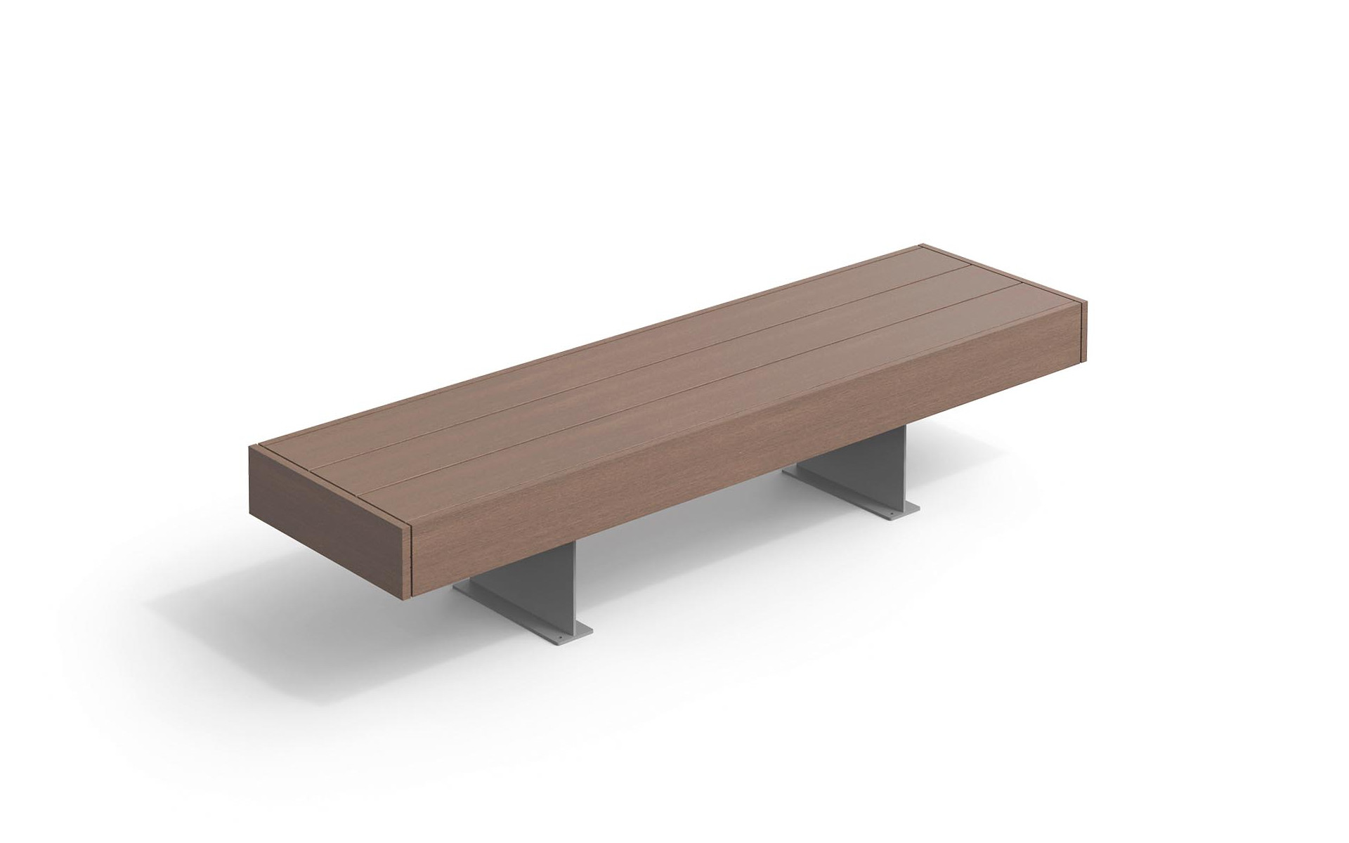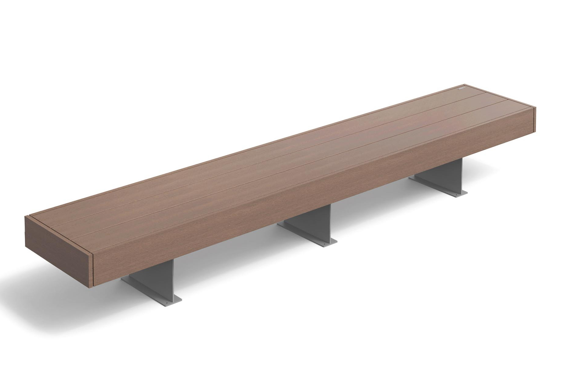 Collezione di panchine composta da supporti in acciaio verniciato o Corten, cornice perimetrale in legno duro e seduta disponibile in tre varianti: con tavole in legno duro a giunti sfalsati (versione A), con tavole intere (versione B) oppure in WPC (Wood Polymer Composite). Le panchine sono disponibili in due misure, con possibilità di aggiungere uno o più schienali in legno a seconda delle esigenze funzionali o compositive.