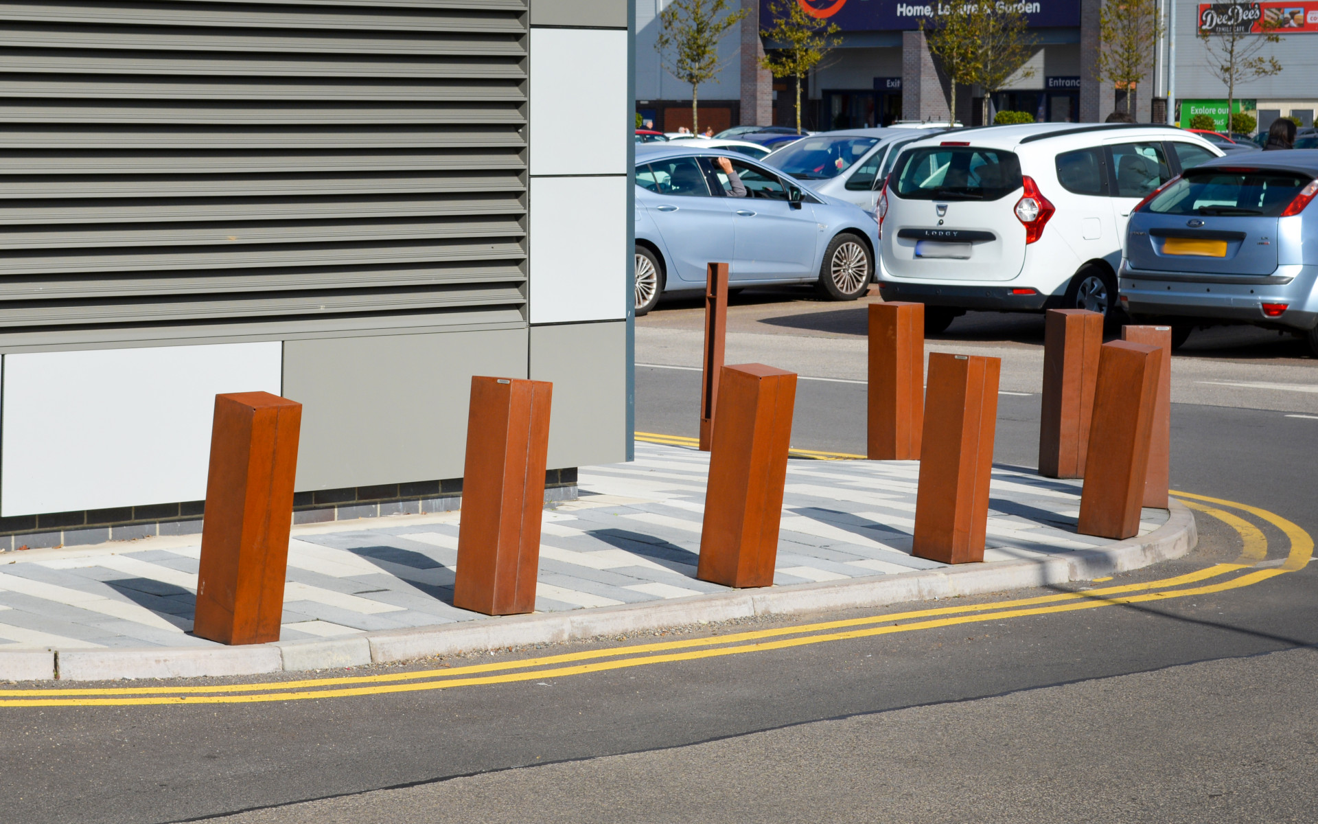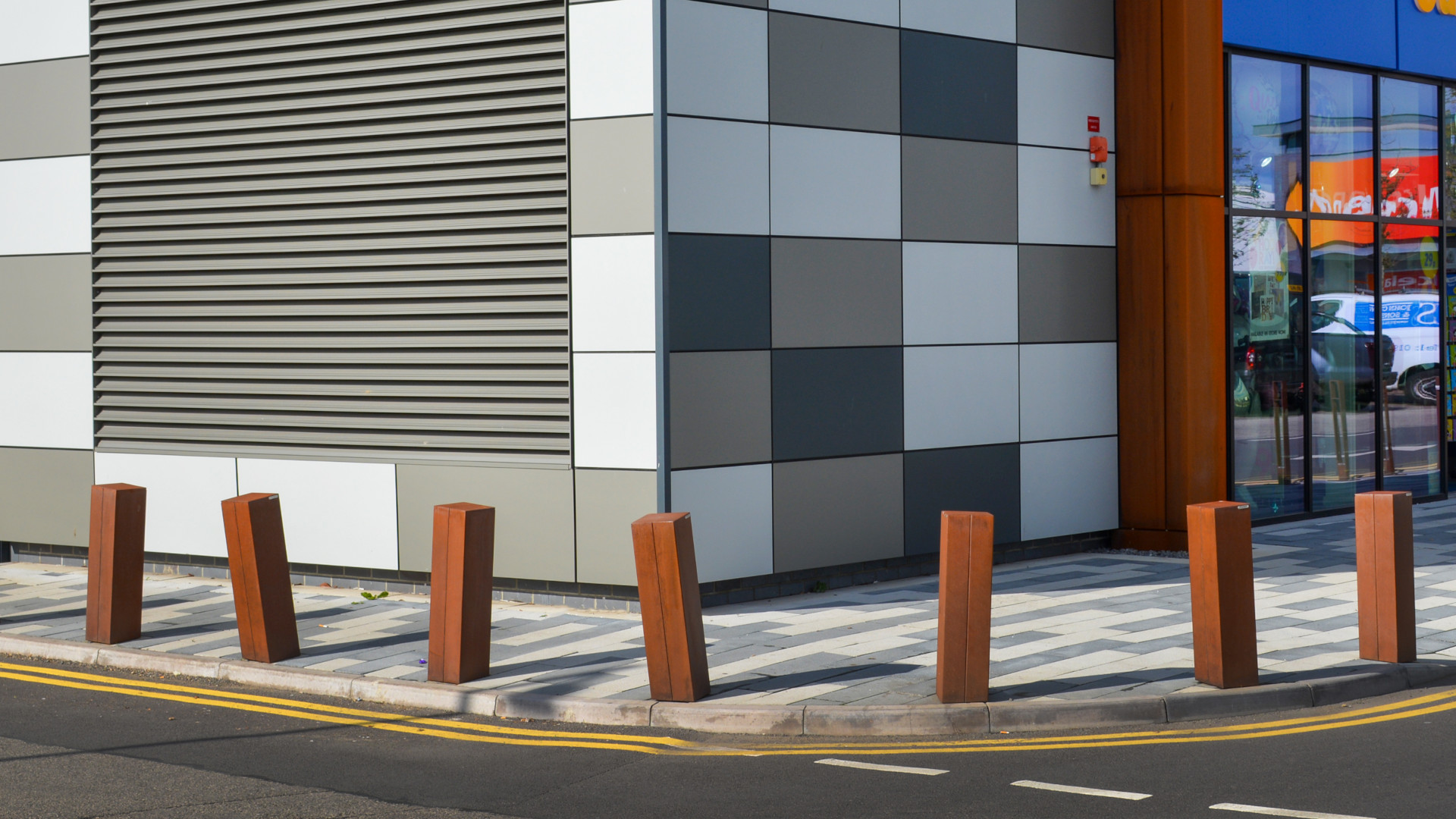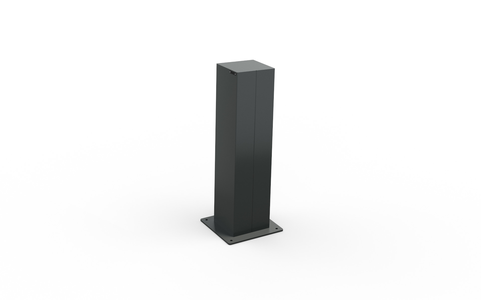 Dissuasore pedonale a base quadrata con sviluppo verticale inclinato, realizzato in lamiera d’acciaio verniciato e caratterizzato dalla presenza di scanalature decorative su due lati contrapposti. La sua geometria dinamica lo rende adatto a contesti urbani contemporanei, unendo funzionalità e identità visiva.