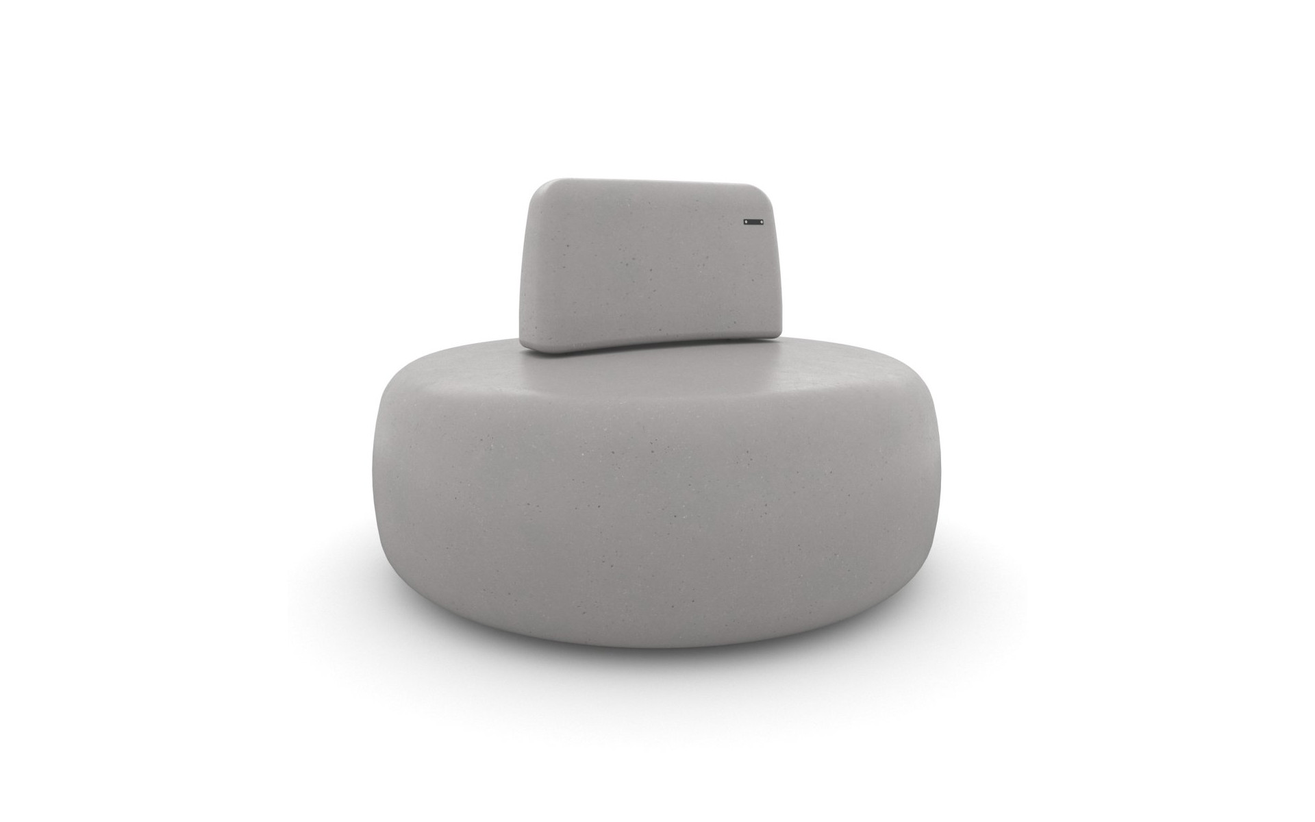 Collezione di sedute a forma di pouf circolare in HPC (High Performance Concrete), alleggerite all’interno. Disponibile in due versioni con o senza schienale in HPC (High Performance Concrete). Le sedute possono essere installate singolarmente o in composizione.