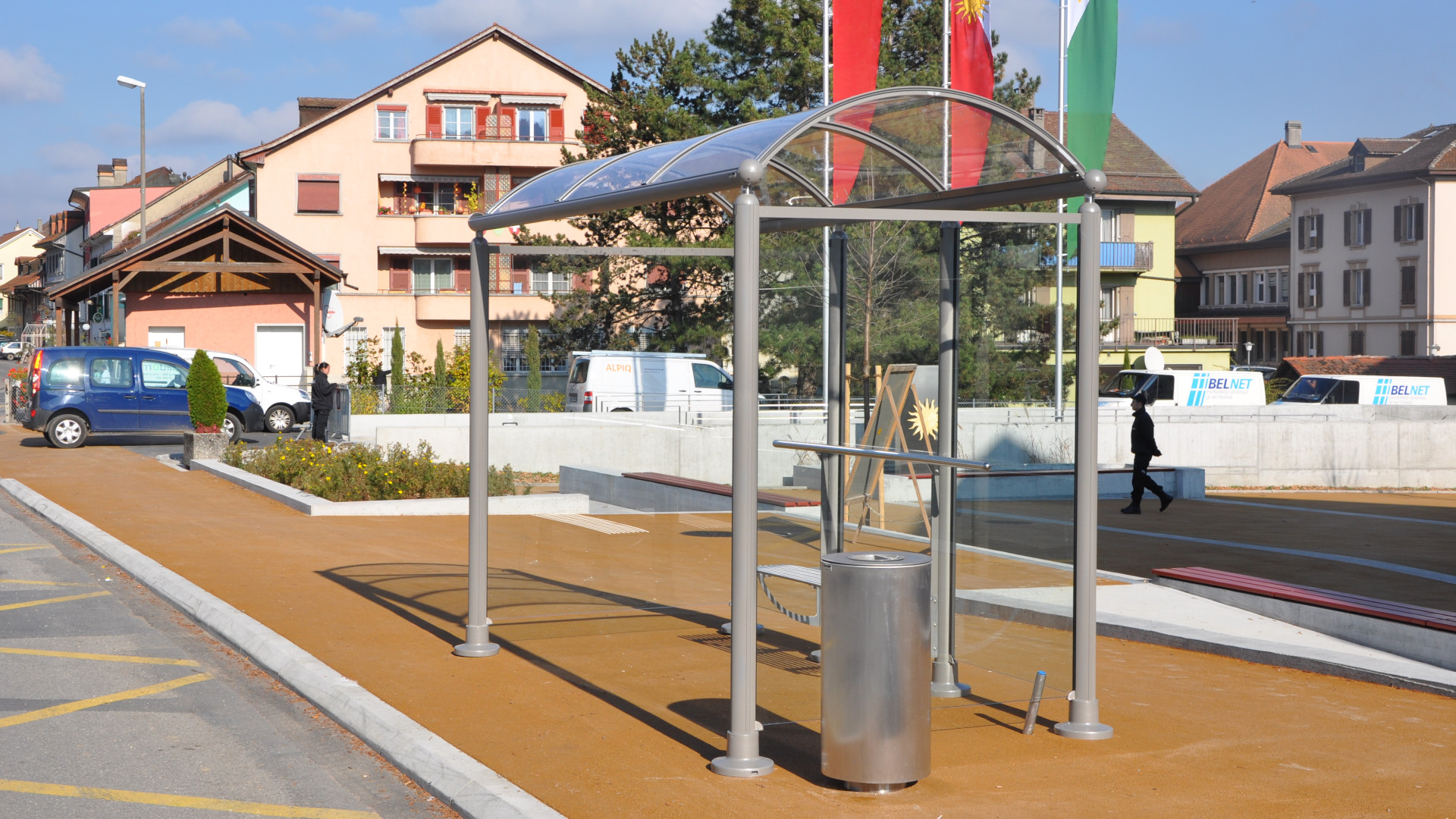 Pensilina modulare dal design contemporaneo, composta da colonne in estruso di alluminio rigato con rinforzi interni in acciaio e piastra base. Il fondo può essere realizzato con pannelli in vetro accoppiato o in lamiera d’acciaio traforata, mentre la copertura è costituita da lastre in metacrilato trasparente o fumé, sostenute da centine e controcentine in alluminio. Gli elementi superiori in estruso di alluminio convogliano l’acqua piovana all’interno delle colonne, garantendo efficienza funzionale e pulizia formale. La pensilina è dotata di maniglione in acciaio Inox ed è completamente personalizzabile con seduta in acciaio, pareti laterali in vetro o lamiera forata, bacheca pubblicitaria, insegna, timpano in metacrilato e illuminazione LED integrata. Ideale per l’arredo urbano di aree di attesa e trasporto pubblico.