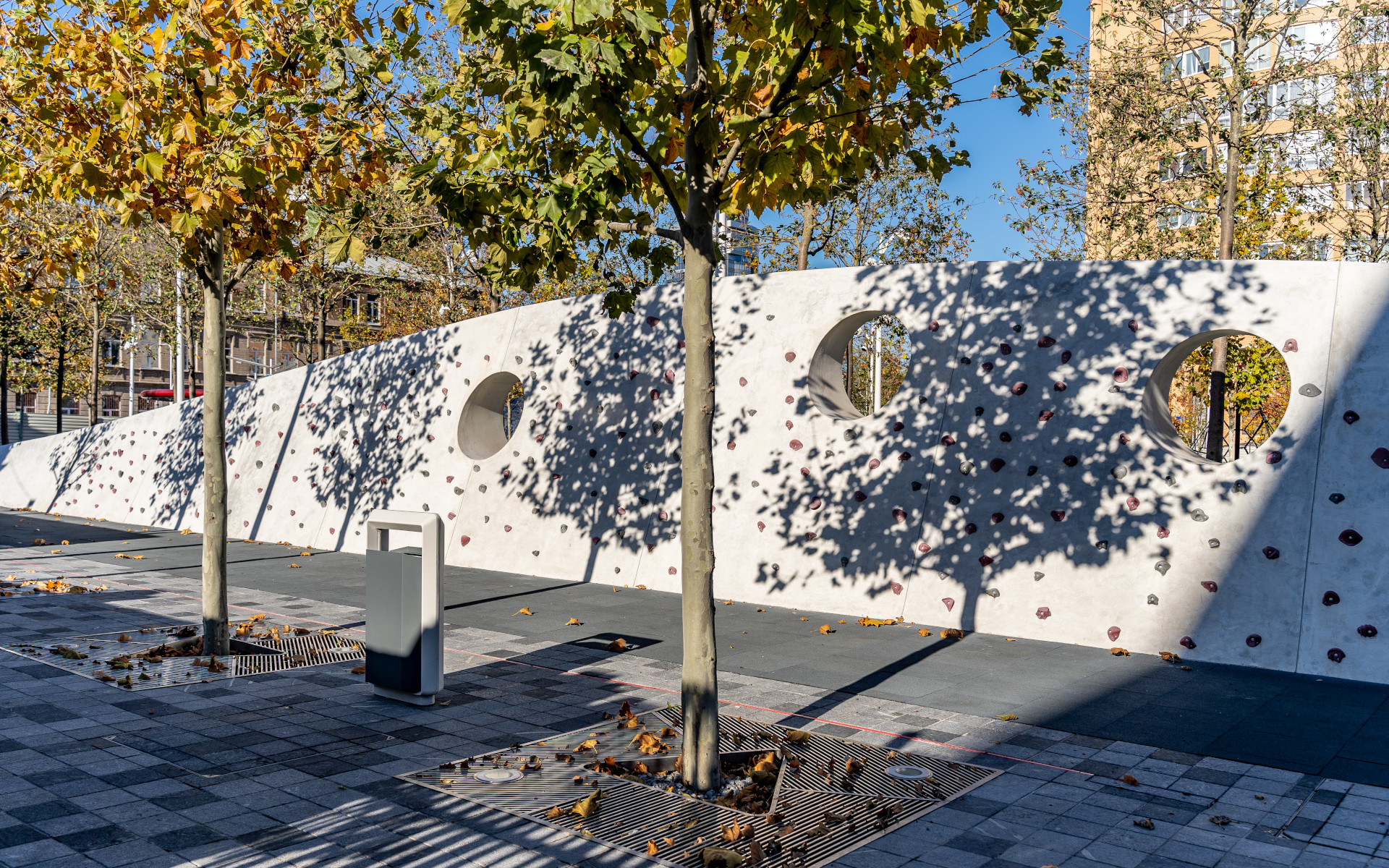 Cestino composto da una robusta struttura in UHPC (Ultra High Performance Concrete) e da due pannelli laterali speculari in lamiera d’acciaio, di cui uno apribile con serratura a scatto. All’interno è presente un anello reggisacco integrato, per una gestione pratica e sicura del contenitore.