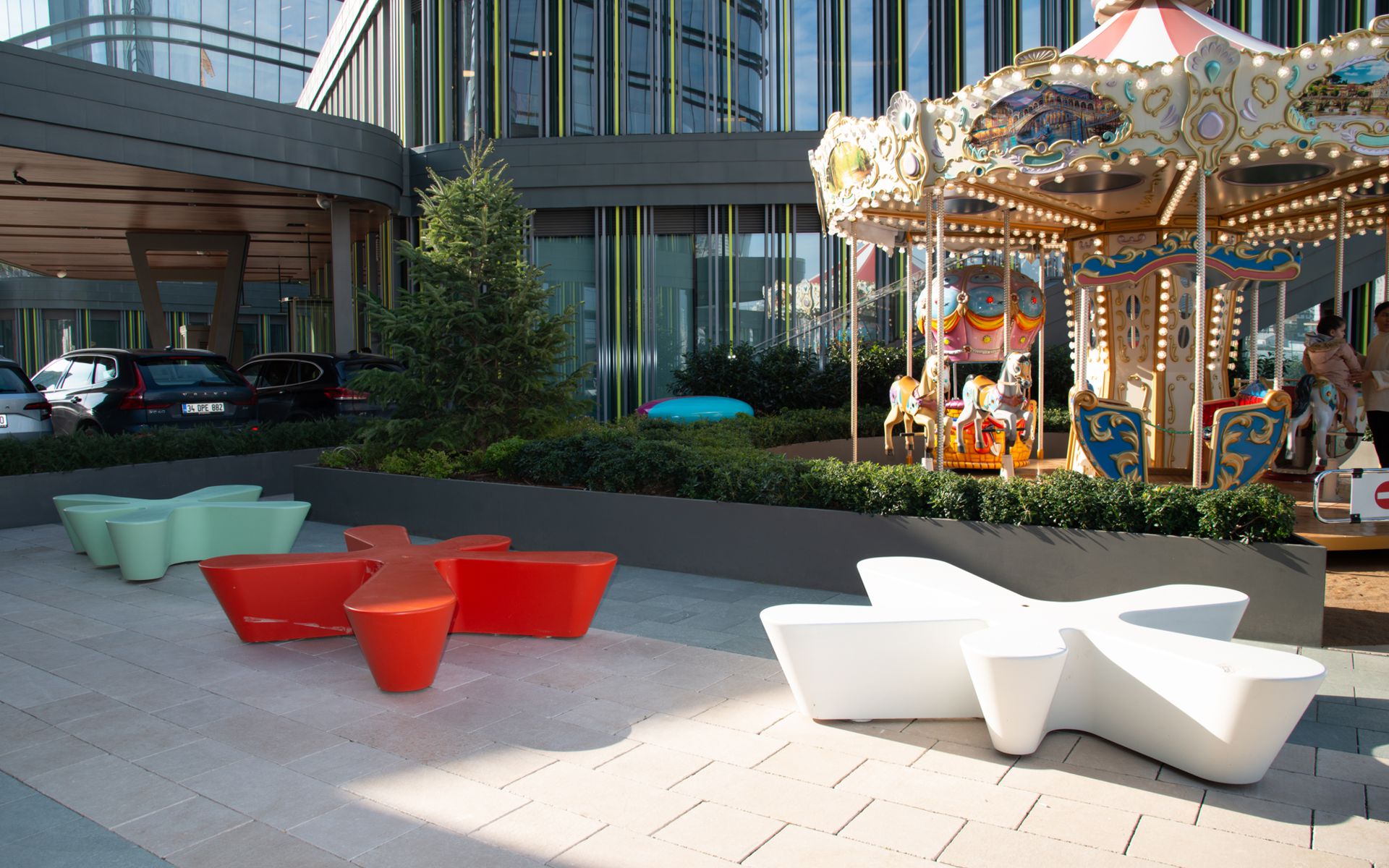Seduta monolitica dalla linea organica, realizzata interamente in HPC (High Performance Concrete) o in Vetroresina, ideale per valorizzare spazi pubblici contemporanei grazie alla sua forma scultorea e alla resistenza dei materiali. La superficie della versione in Vetroresina viene trattata con fondo epossidico e rifinita con verniciatura poliuretanica, disponibile in tutti i colori della gamma RAL Metalco.