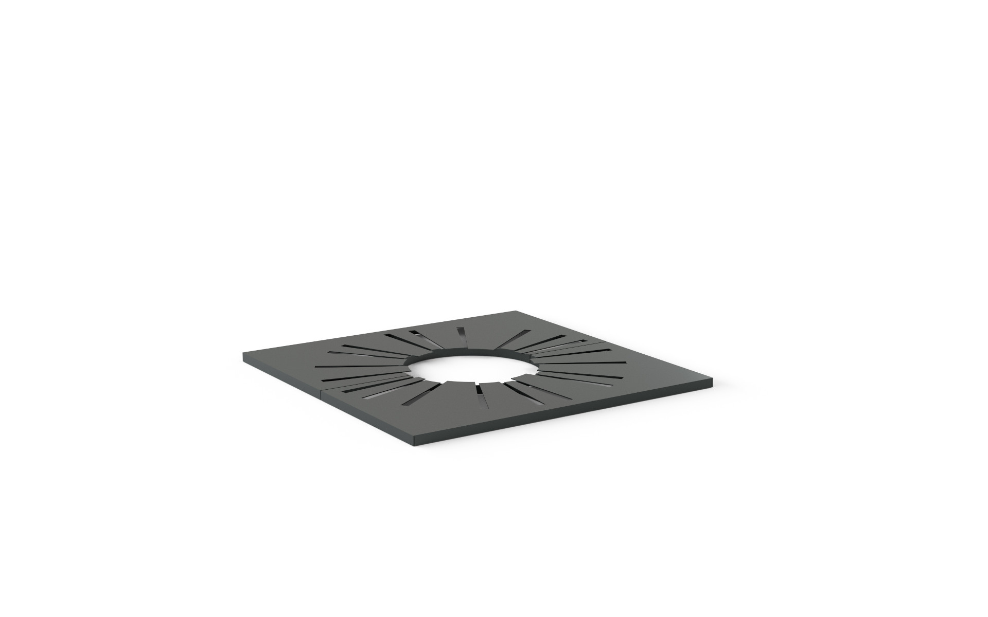 Salvapiante di forma quadrata con foro circolare, realizzato in lamiera d’acciaio decorata a laser con motivi geometrici. Composto da due metà, predisposte per il fissaggio con viti, e rinforzato internamente e sul perimetro con piatto d’acciaio. Disponibile in diverse versioni, per misura e/o diametro del foro. Accessoriabile con controtelaio.