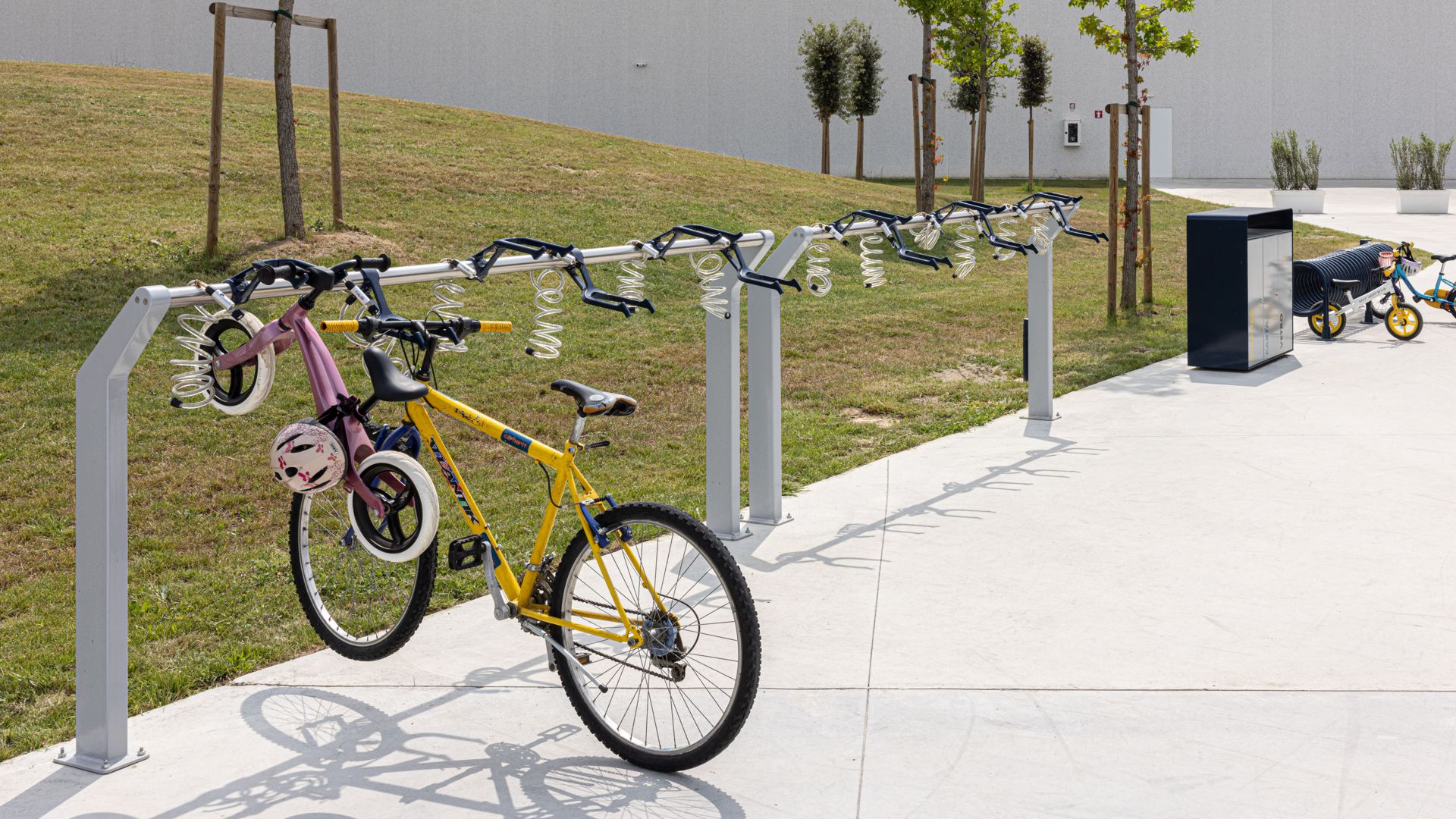 Il parco è dotato di arredo urbano realizzato da Metalco. I visitatori possono lasciare le loro biciclette negli spazi dedicati, equipaggiati con i portabici Biella e Reset, e poi rilassarsi sulle sedute monolitiche della collezione Tree Line, che, con le sue linee organiche, diventa una cornice perfetta per gli spazi verdi.