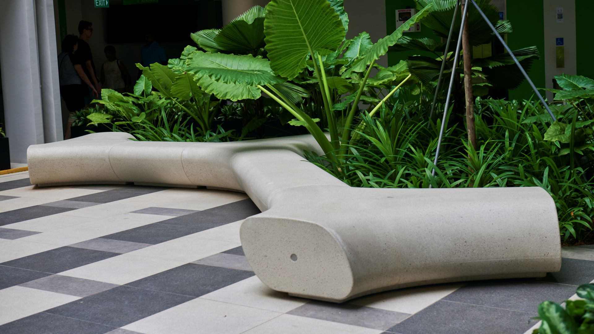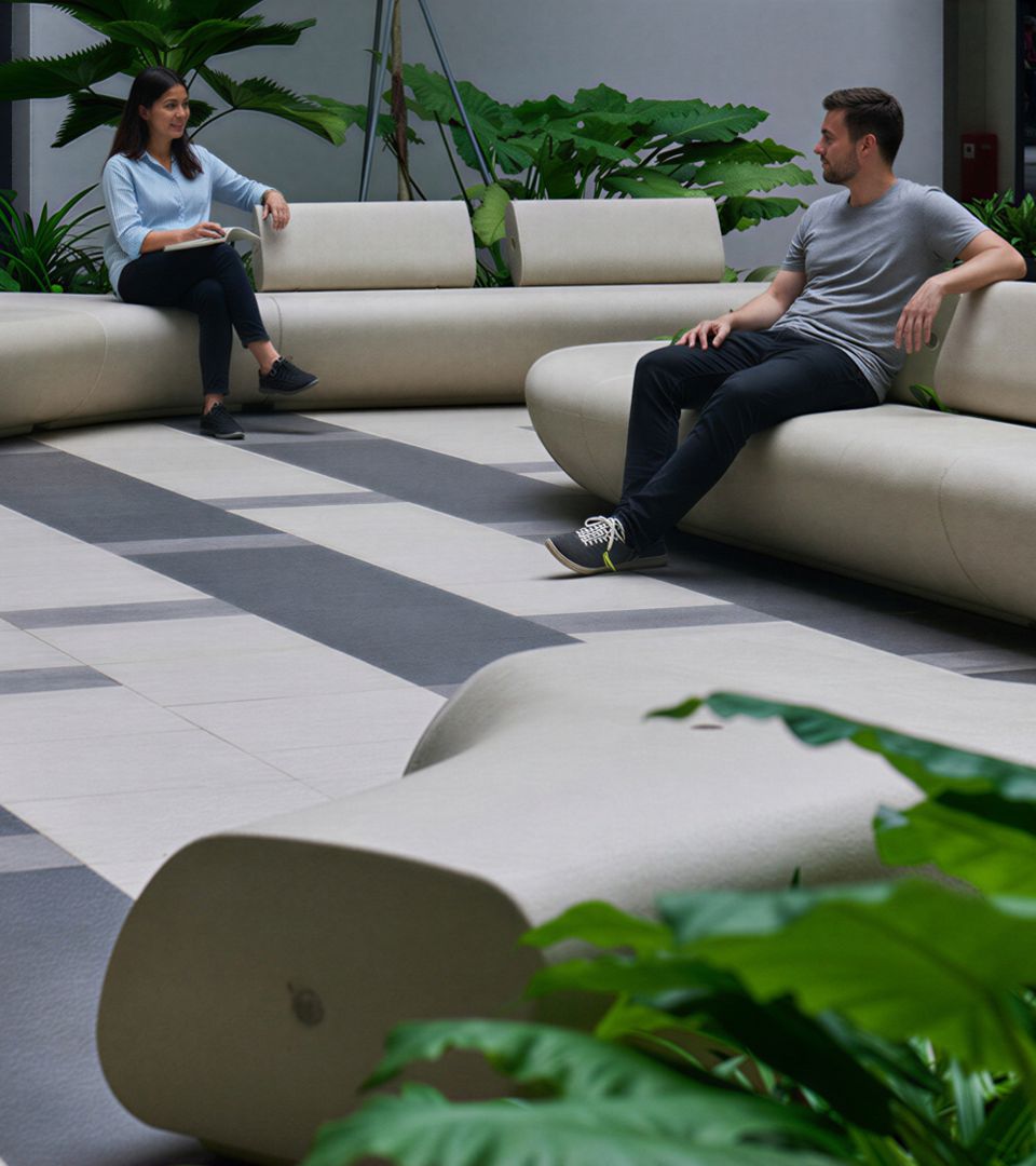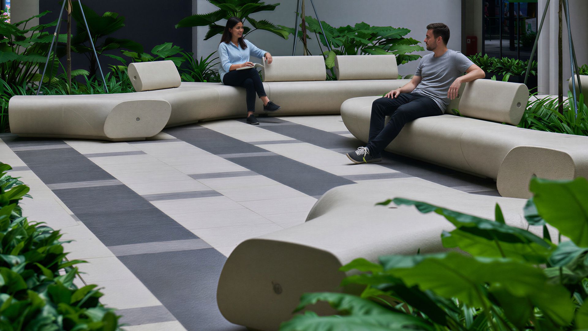 All’interno di questa composizione, il sistema di sedute Tree Line di Metalco svolge un ruolo centrale. Con le sue forme fluide e modulari, le panchine interrompono la rigidità della griglia della pavimentazione e introducono nello spazio un ritmo più informale e a misura d’uomo. Disposti intorno alle aiuole e agli alberi, gli elementi fanno molto più che offrire sedute: definiscono aree di sosta, accompagnano i percorsi e trasformano il verde in un fulcro spaziale attivo. In questo modo, le panchine non operano semplicemente come arredo urbano, ma come parte integrante della stessa struttura del paesaggio