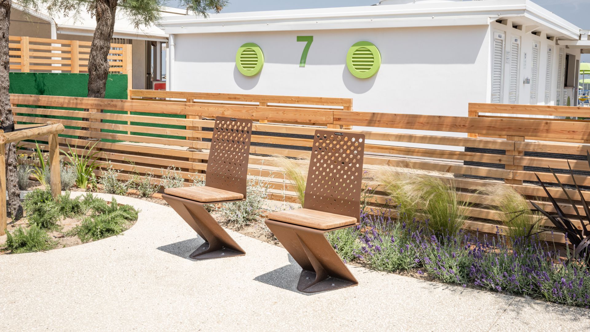 Le sedute individuali per questo progetto, progettate da LAPRIMASTANZA e realizzate da Metalco, rendono omaggio alle tradizioni locali, riflettendo un tempo in cui i residenti si riunivano nella fresca brezza serale, posizionando le loro sedie lungo la strada sterrata per socializzare e cercare sollievo dal caldo estivo. Conosciute come LAPRIMASEDIA, queste sedute sono posizionate strategicamente per favorire l’interazione comunitaria, in linea con l’impegno di Metalco per la connettività sociale.