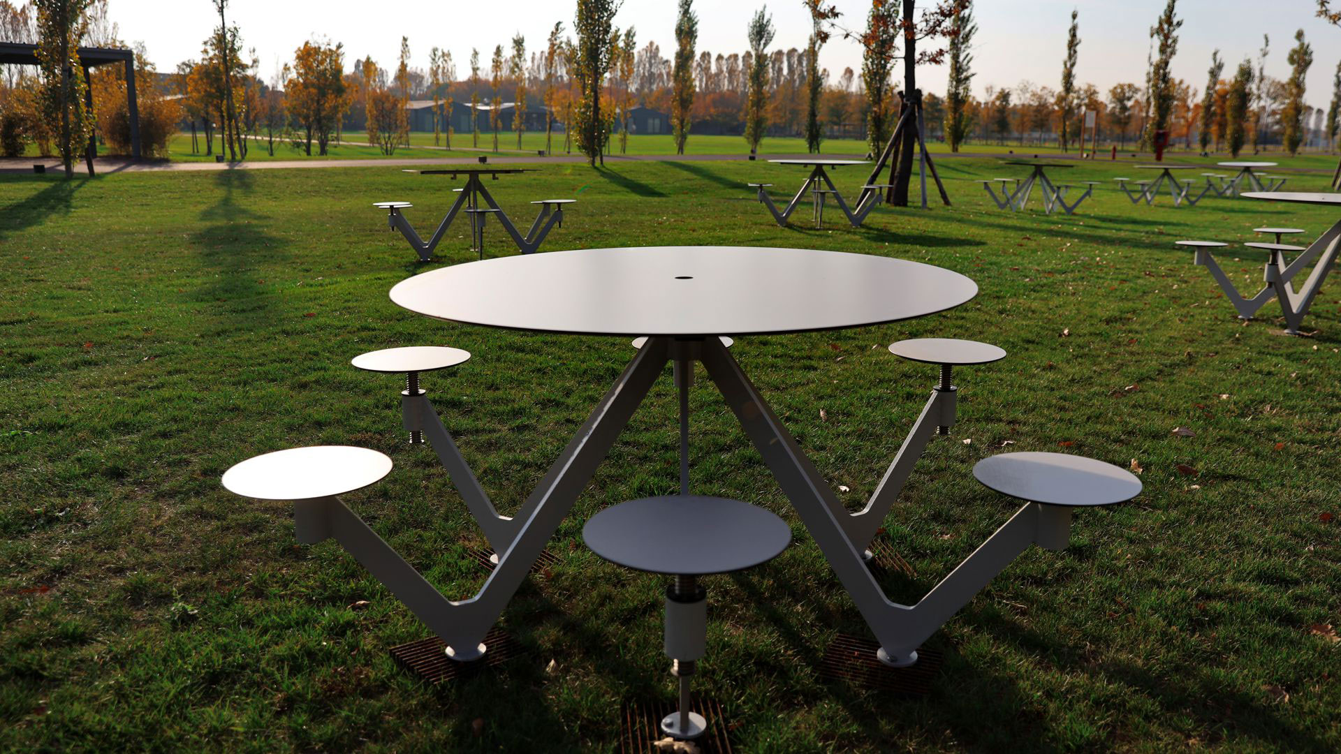 Tavoli Air-Circle e panchine Foresta in H-Farm: Design Urbano | Metalco