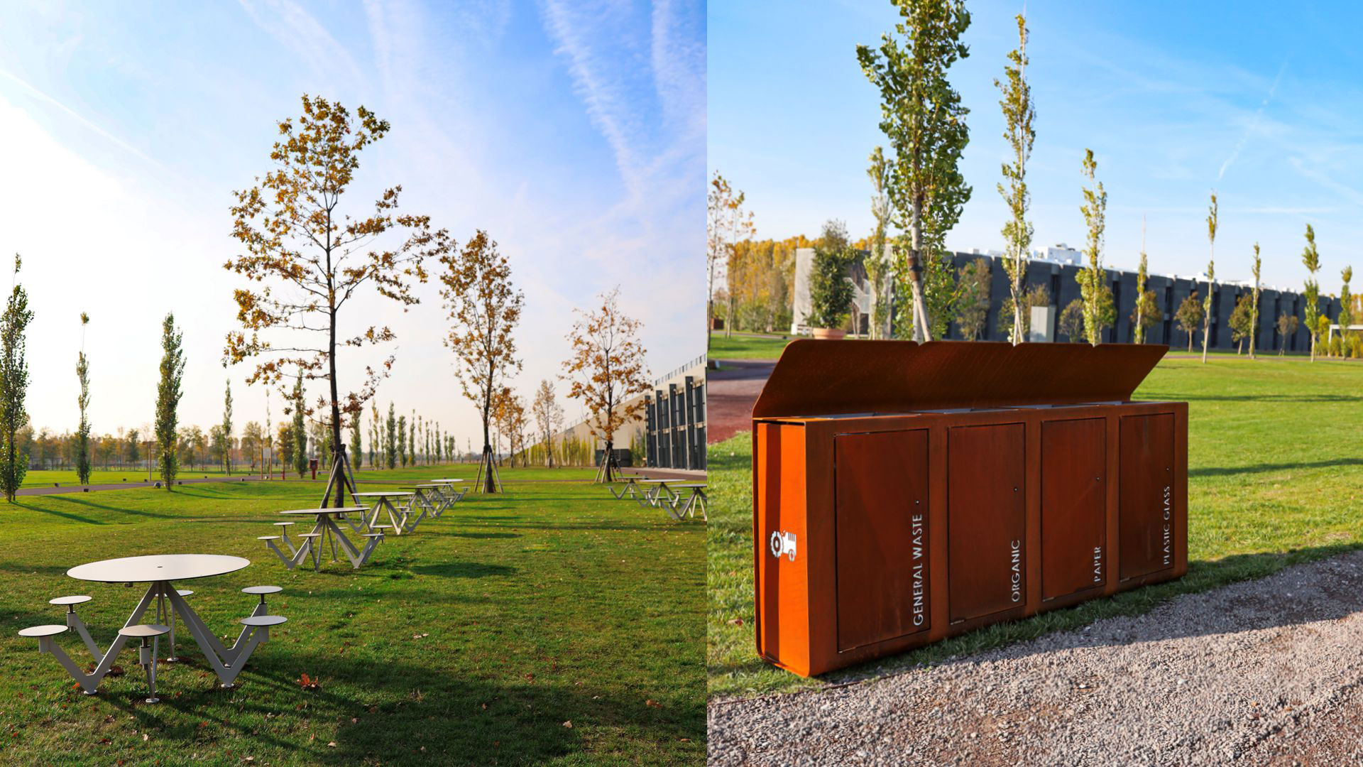 Per il progetto, le panchine Kore sono state utilizzate per arricchire le aree comuni del campus con il loro design e la loro bellezza. Punti di ristoro sono stati creati grazie ai nostri tavoli da picnic Air Circle, che danno la possibilità ai giovani di rilassarsi all’aria aperta, favorendo così anche la socialità, un valore in cui Metalco crede fortemente.